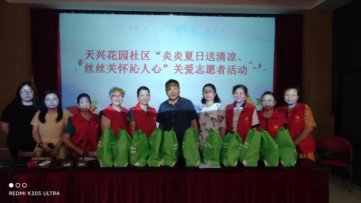 为了进一步关怀激励广大志愿者,弘扬志愿服务博爱精神,服务他人,8月3日,武汉市长江新区谌家矶街道天兴花园社区开展“炎炎夏日送清凉,丝丝关爱沁人心”关爱志愿者活动,为红色细胞志愿服务队的成员们送上一份夏日的慰问,并在红色影院为志愿者们播放了电影《妈妈》。