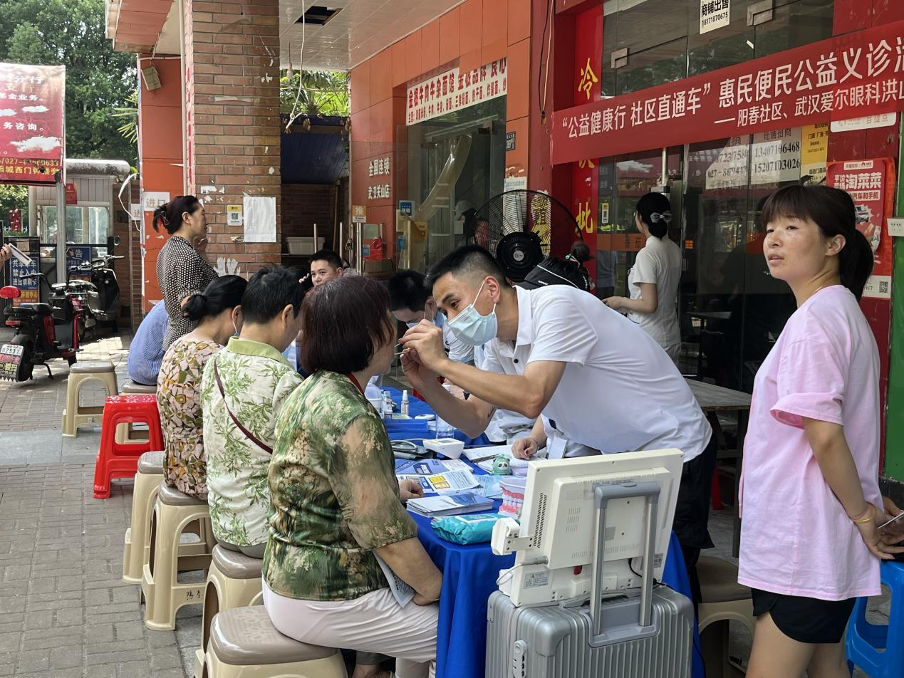 传递健康,关爱守护,为了给辖区居民的健康生活提供便利,增强居民健康意识,提升居民健康水平,8月2日上午,武汉市洪山区关山街道阳春社区通过关山街道商会服务社区直通车联系辖区企业咿呀口腔、爱尔眼科洪山医院在社区活动中心开展“公益健康行,社区直通车”惠民、便民义诊活动。