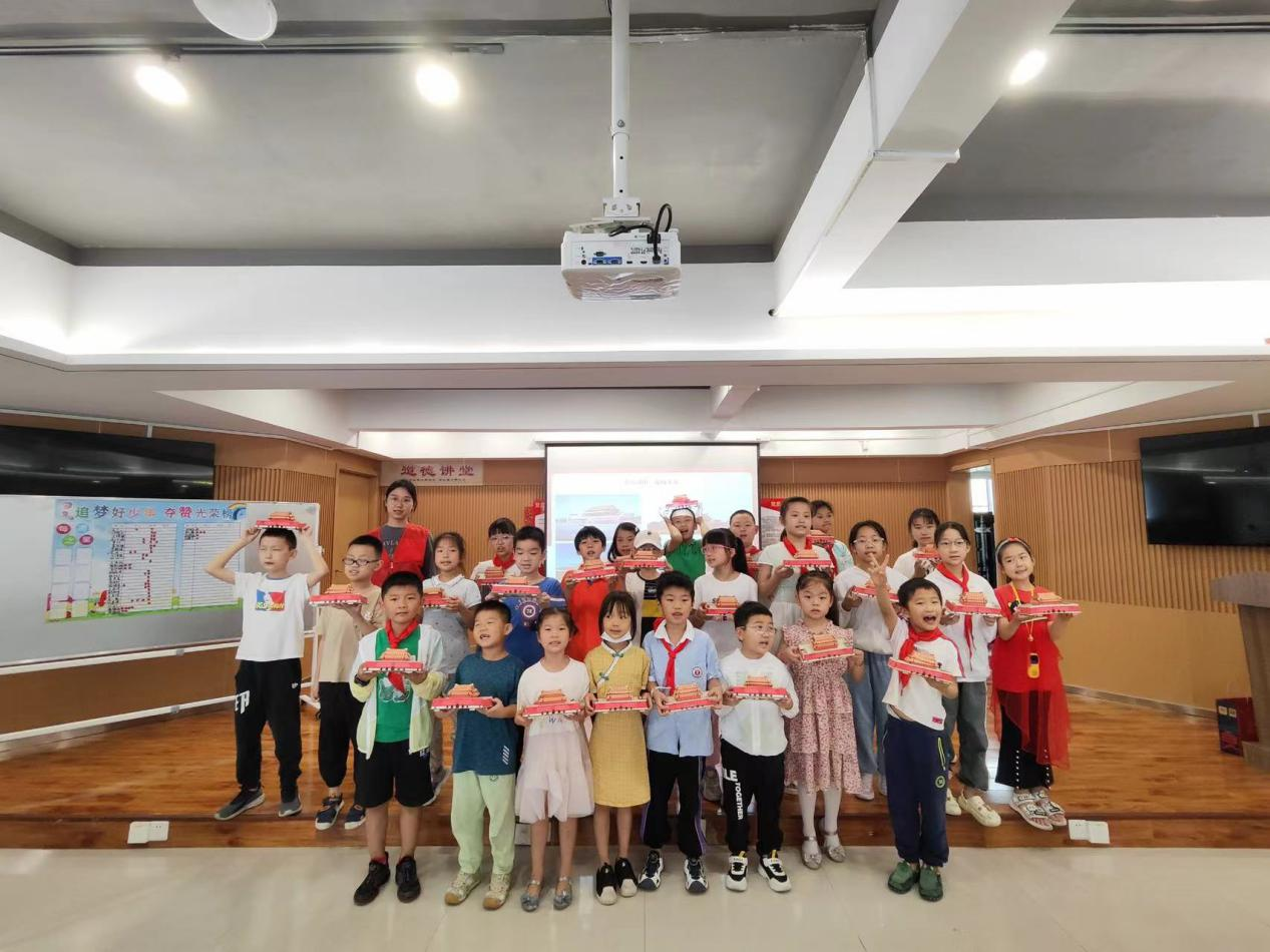 天安门是我们国家最著名的建筑物,历史悠久,经久不衰。并且承载着我们国家的血与泪,更承载了无数的荣光。在爱国教育手工模型课上,老师给大家展示了中国国徽并用国徽上的天安门的形象给大家开始讲解天安门的历史,从“五四运动”到天安门如今的辉煌,志愿者老师生动的讲解带领着大家走上时间长河的桥上,一段段历史,一个个振奋人心的画面展现在了孩子们的脑海中,在这一环节,孩子们回答问题非常积极,更有许多同学们自告奋勇地给大家介绍自己去天安门游玩的所见所闻,充分地展现了孩子们丰富的阅历与知识。孩子们带着敬畏的心情开始了今天的手工制作,在老师的指导下,带着对革命历史的敬畏,许多孩子们快速地拼出了美丽的天安门模型,一个个端正的天安门模型点燃了孩子们浓烈的爱国之心。