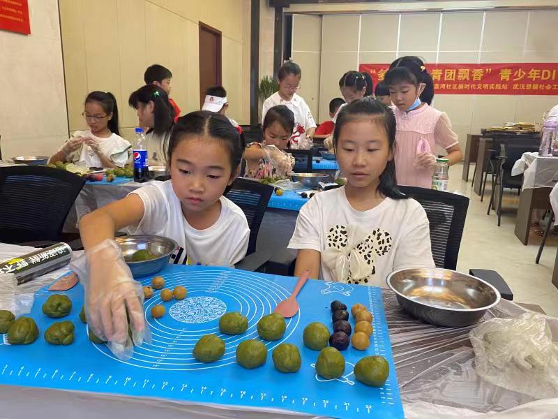 为弘扬非物质文化遗产,丰富辖区内儿童的暑期文化生活,8月4日,武汉经济技术开发区沌阳街道金域蓝湾社区新时代文明实践站联合武汉楚馨社会工作服务中心,开展了“多彩非遗 青团飘香”青少年DIY活动,共30名青少年参与此次活动。