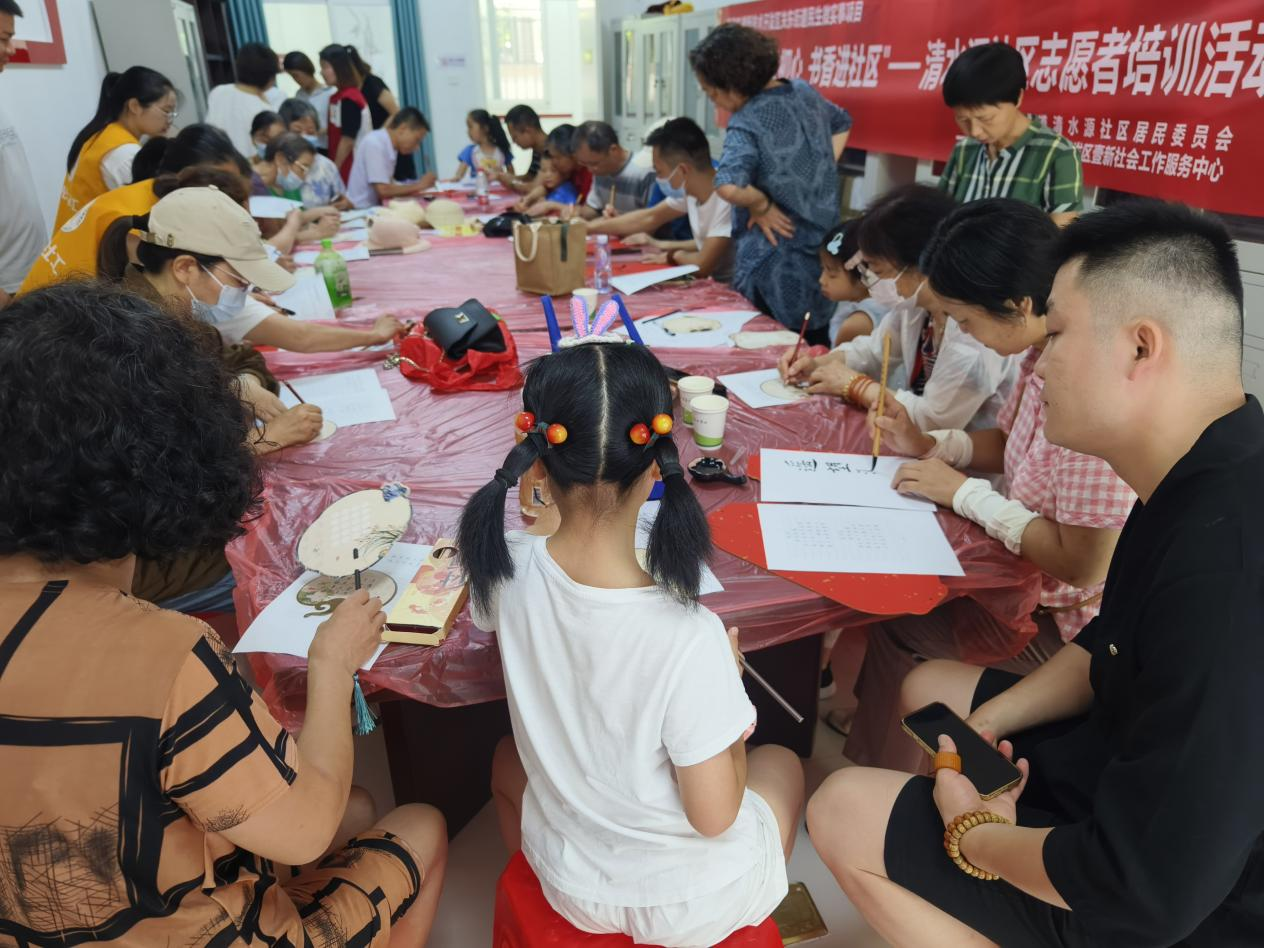 为进一步传承和发扬中国书法文化,展示书法风采,增进居民之间相互交流学习,加强社区精神文明建设,促进新时代文明实践与志愿服务的深度融合,8月3日,武汉东湖高新区关东街清水源社区组织辖区近30位书法爱好者在活动室举办了一场以“笔墨绘初心 书香进社区”为主题的书法培训志愿服务活动。