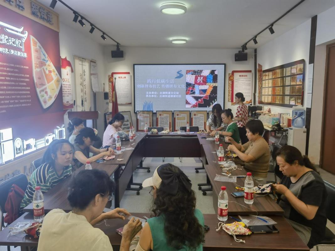 一针一线,唤起传统记忆和现代环保低碳理念。8月2日上午,一场浸润了传统民间工艺和“节能降碳,你我同行”理念的拼布文化活动在江汉区北湖街道德望记忆活动室火热展开。