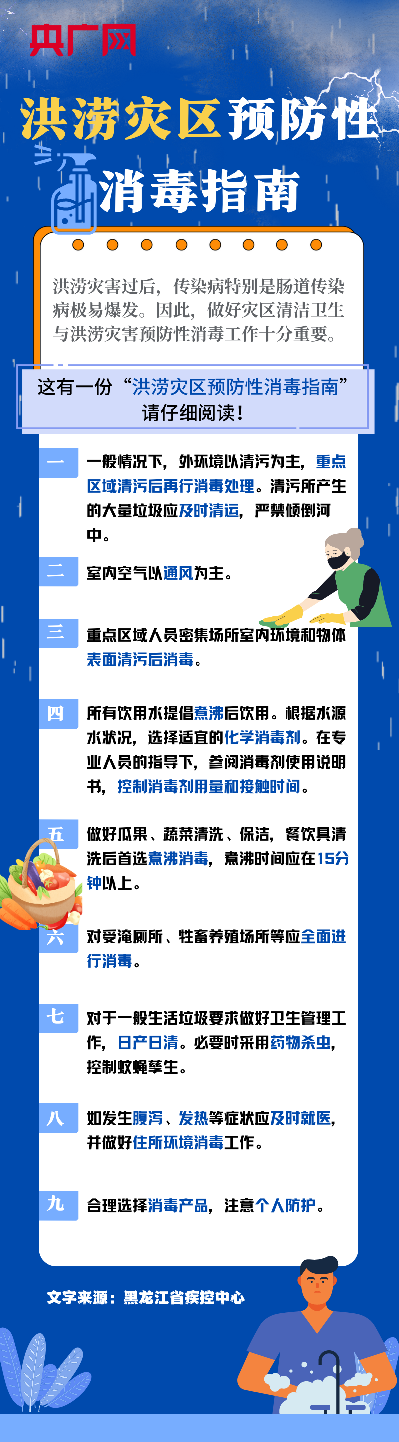 为做好洪涝灾害预防性消毒,防止传染病特别是肠道传染病的爆发,保障人民群众生产生活的正常进行,这份洪涝灾区预防性消毒指南请收好!
