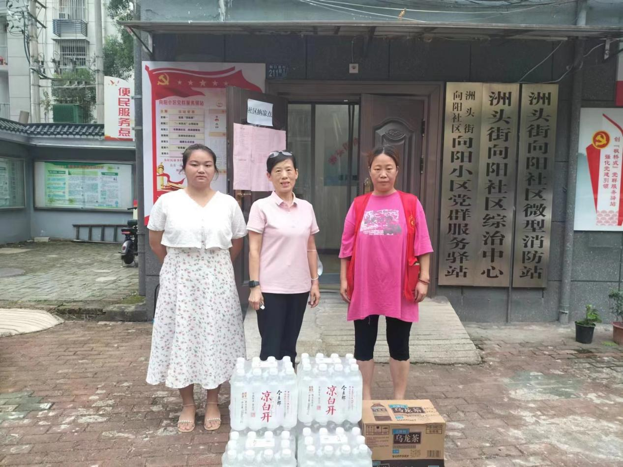汉阳区政协委员、武汉乐福园总监刘喜明及黄鹤楼酒业副总经理魏国来到洲头街道向阳社区,看望慰问户外工作者,为户外工作者和困难人群送去了矿泉水、西瓜、乌龙茶等防暑降温慰问品,详细了解他们近期的工作情况,感谢他们为社会发展建设做的积极贡献。