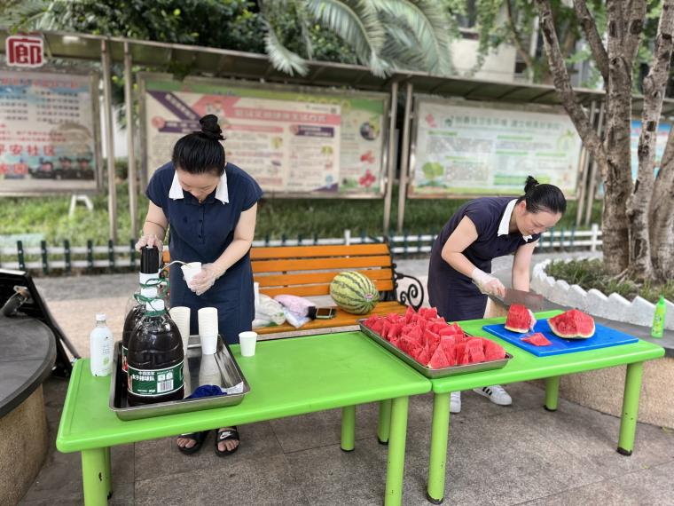 露天电影放映活动不仅给社区居民送去了欢乐,也搭建了沟通的桥梁,不少居民在此共叙邻里温情,在活动现场,社区还准备了消暑西瓜和酸梅汤免费给大家食用,为这个夏日的夜晚带来丝丝清凉。