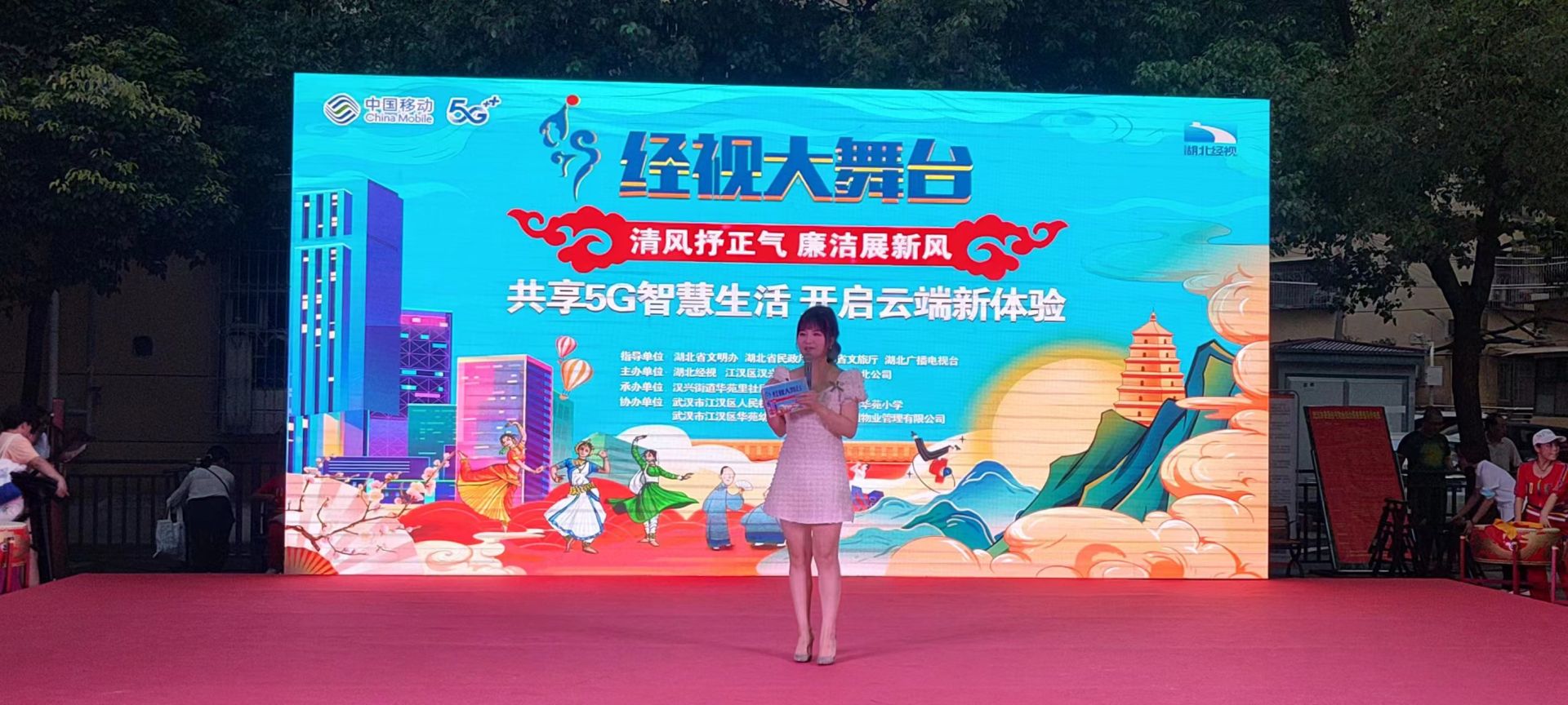 8月4日晚七点整,湖北省武汉市江汉区汉兴街道华苑里社区,一场以“清风抒正气 廉洁展新风”为主题的经视大舞台专场晚会在华苑小区中心广场拉开序幕。