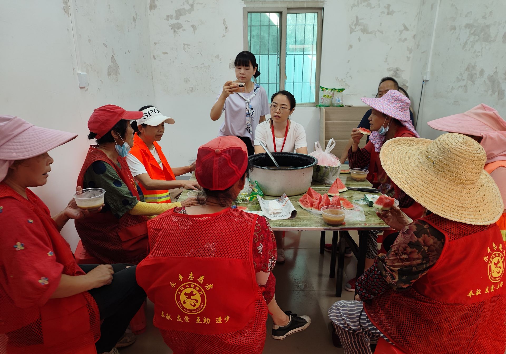 社区工作人员和志愿者们将亲自熬好的绿豆汤和西瓜送到环卫工作者手上,对他们在高温下的坚守岗位、任劳任怨送上一份关爱,感谢他们为保持整洁的辖区环境卫生付出的辛勤劳动,并叮嘱他们工作中注意防暑降温,合理安排工作时间,尽量避开高温时间段,询问他们在工作中遇到的困难并积极给与回应。同时,鼓励环卫工作者就近就便到辖区的阳小驿户外工作者服务驿站和村湾便民服务驿站进行纳凉休息,补补水、歇歇脚。