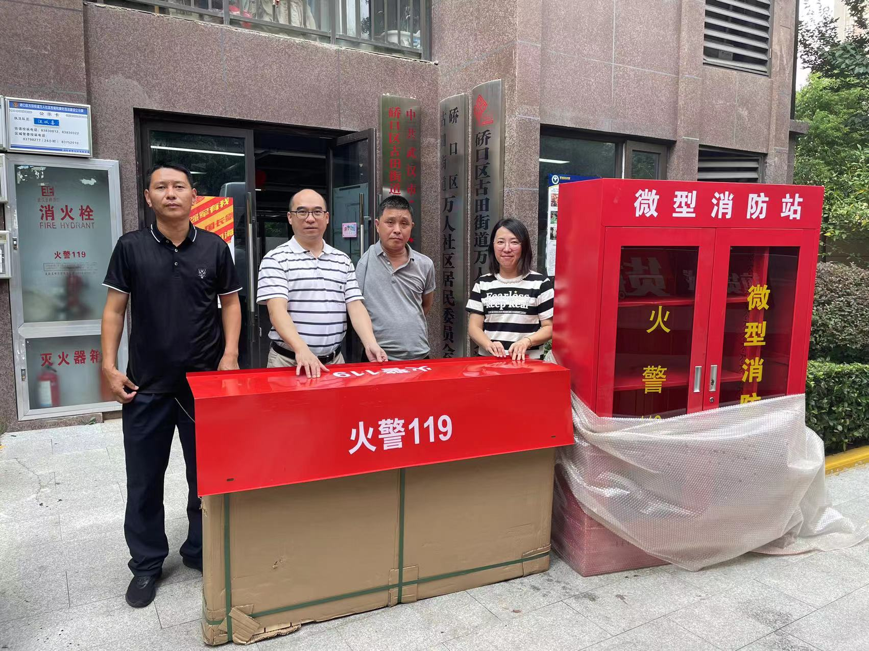 万人社区管辖范围由原来的一个小区增加至目前的三个小区,尽管这三个小区都是有物业管理小区,但由于受场地限制没有场所可建设,社区消防站建设一直处于空白状态,给社区消防安全造成了一定的隐患,后经社区协调取得美好名流汇2期20余平米的房间作为社区消防站,但设施及相应器材未得到落实,得此信息,区自然资源规划局主动请缨,认领社区消防站建设的器材与设施,并于7日下午顶着烈日为社区送来了消防器材:微型消防柜2套、消防架2套、强光手电筒6个、甩棍4个、值班行军床1个。