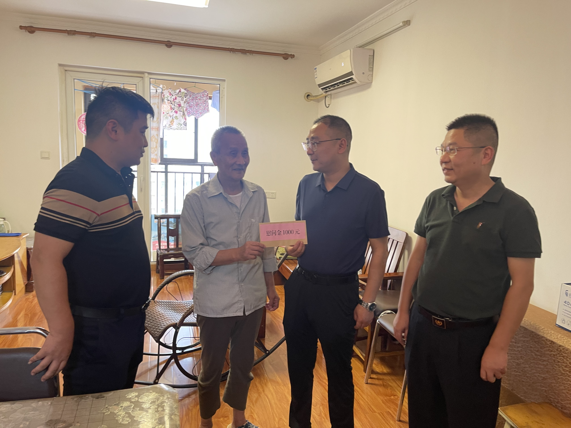 今天(8月8日)下午,武汉市经济技术开发区沌阳街道党工委副主任凃晶晶、枫树湾社区包保领导蔡伟平一行人来到枫树湾社区,走访慰问辖区困难老党员,在炎炎夏日里,为他们送去党和政府的关怀和问候。枫树湾社区书记黄龙全程陪同。
