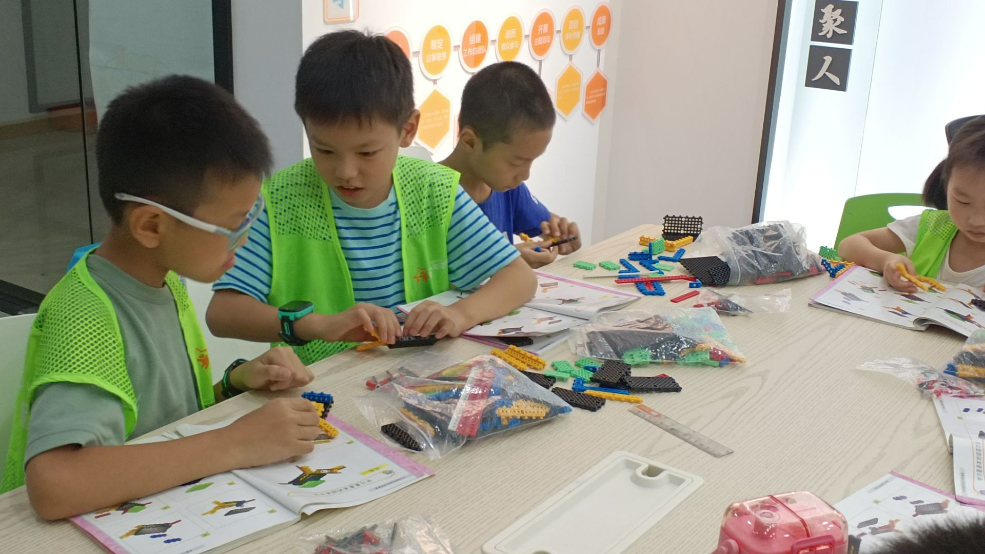 为了丰富社区青少年的课余生活,提升他们的动手能力和创造力,近日,武汉市武昌区南湖街道华锦社区青少年托管班开展了一场令人兴奋的积木搭建机器人活动。活动的内容主要围绕搭建乌龟、蝎子等小动物展开,吸引了众多孩子的参与。