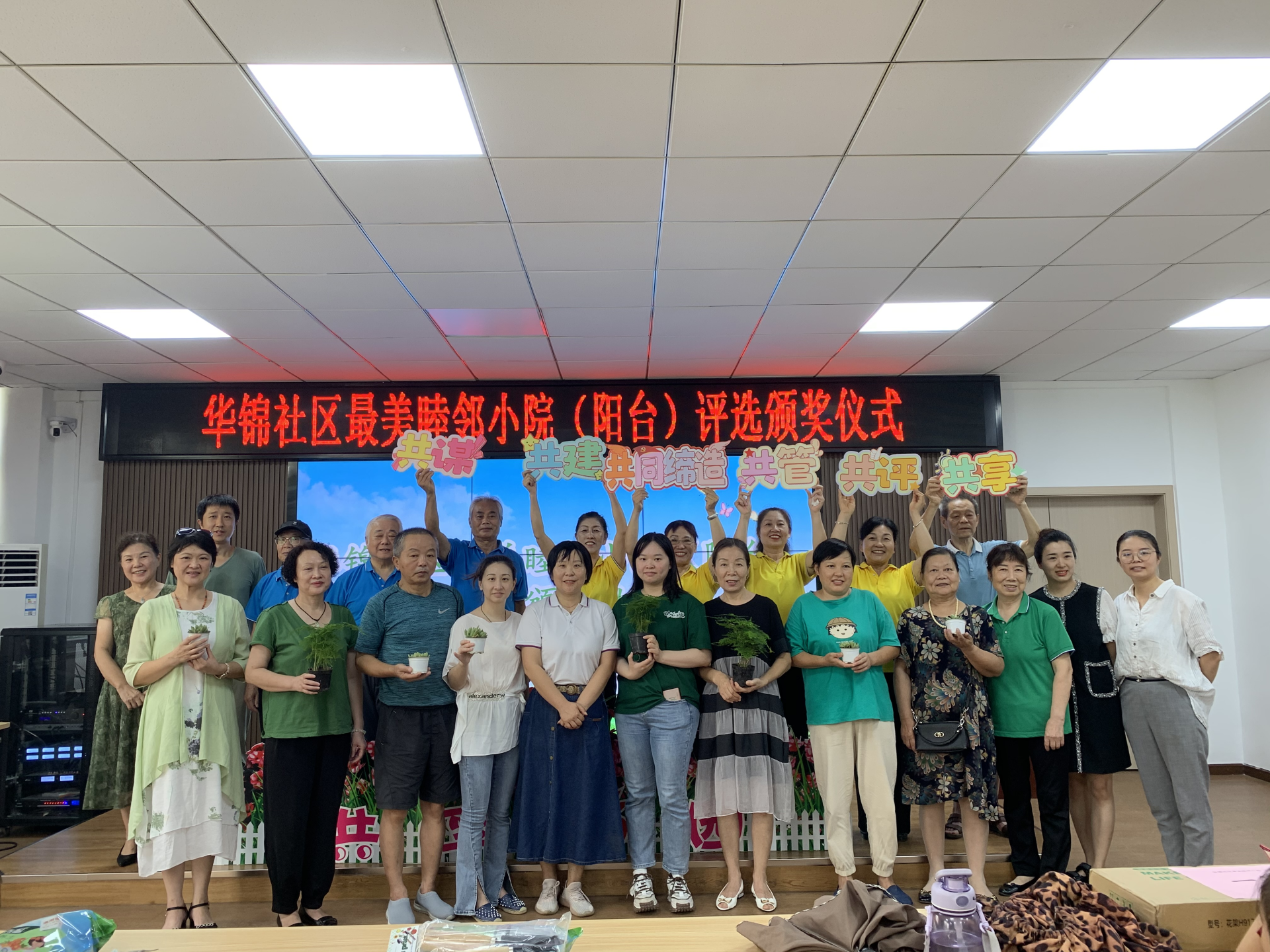 颁奖仪式后,经过大家评选的居民园艺高手们,纷纷加入老红帽志愿团队队长叶小琼建立的共享花园扮靓群,决心用实际行动,将自家睦邻小院(阳台)靓化经验“搬到”社区小区公共绿地中,力争扮靓共同家园,打造名副其实的花园小区。