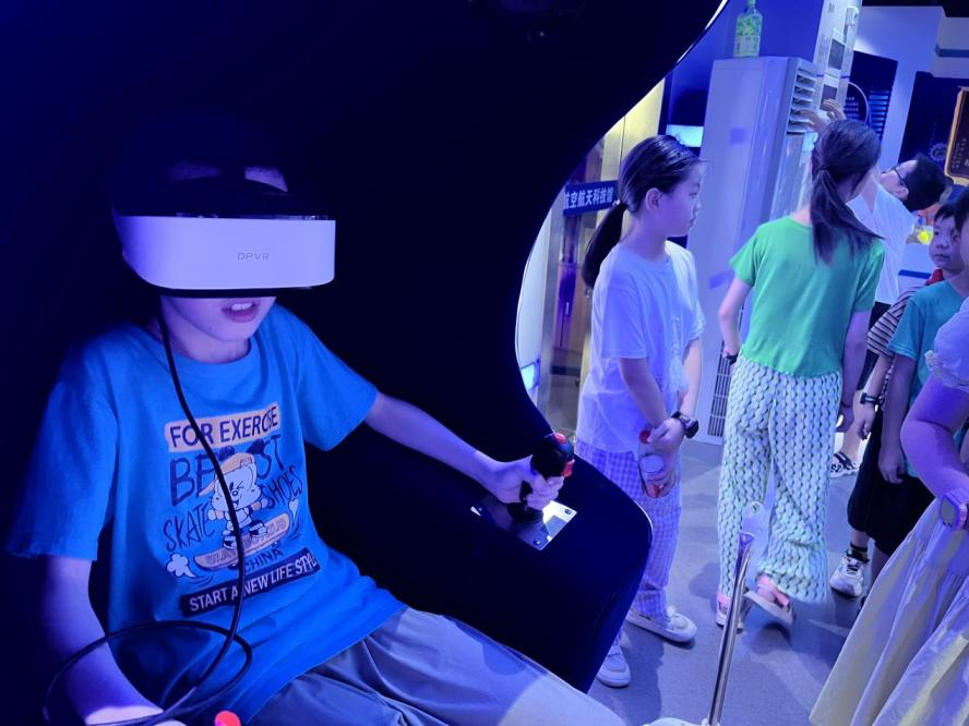 活动开始,社区青少年儿童在专业科普老师的带领参观学习南湖航空航天科技馆,在老师有趣地讲解下,学生们亲身体验航天文化,并感受到航天科技的神奇魅力。歼15舰载战斗机、长征系列火箭、玉兔号月球车等炫酷模型激起孩子们对航空航天科技的无限好奇,体验9D“VR飞行器”、航天知识抢答等让孩子们零距离感受科技的魅力。