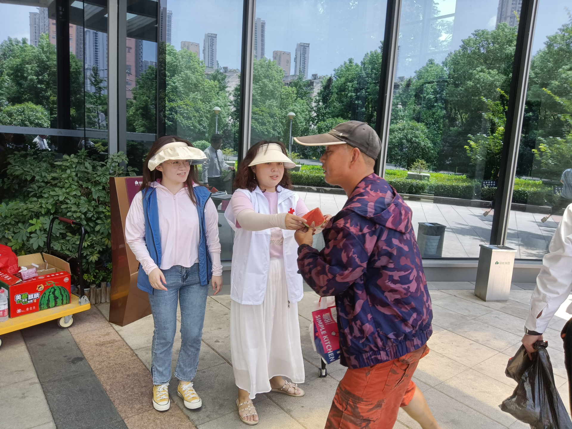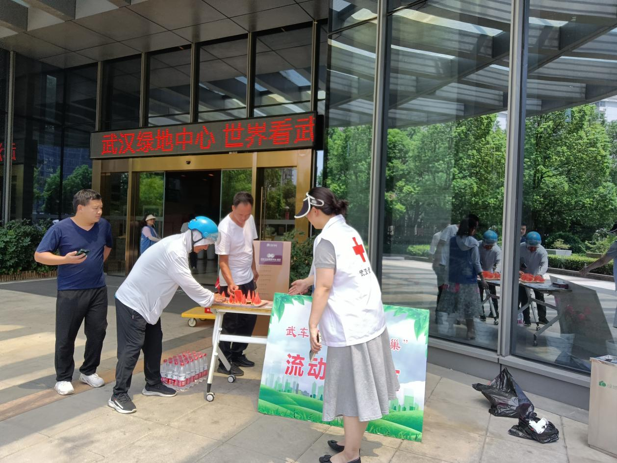 入伏以来,武汉迎来连续高温,作为户外劳动群体,外卖小哥、外卖小哥在为城市运转贡献力量的同时,也面临着高温“烤”验。为牢固做好新就业群体党建工作,弘扬“人道,博爱,奉献”的红十字精神,加强对外卖、快递新就业群体的关怀,近日,武汉市武昌区徐家堋街道武车社区红十字会联合辖区共建单位,在辖区铭创大厦一楼精心组织了“夏日送清凉”志愿服务活动。