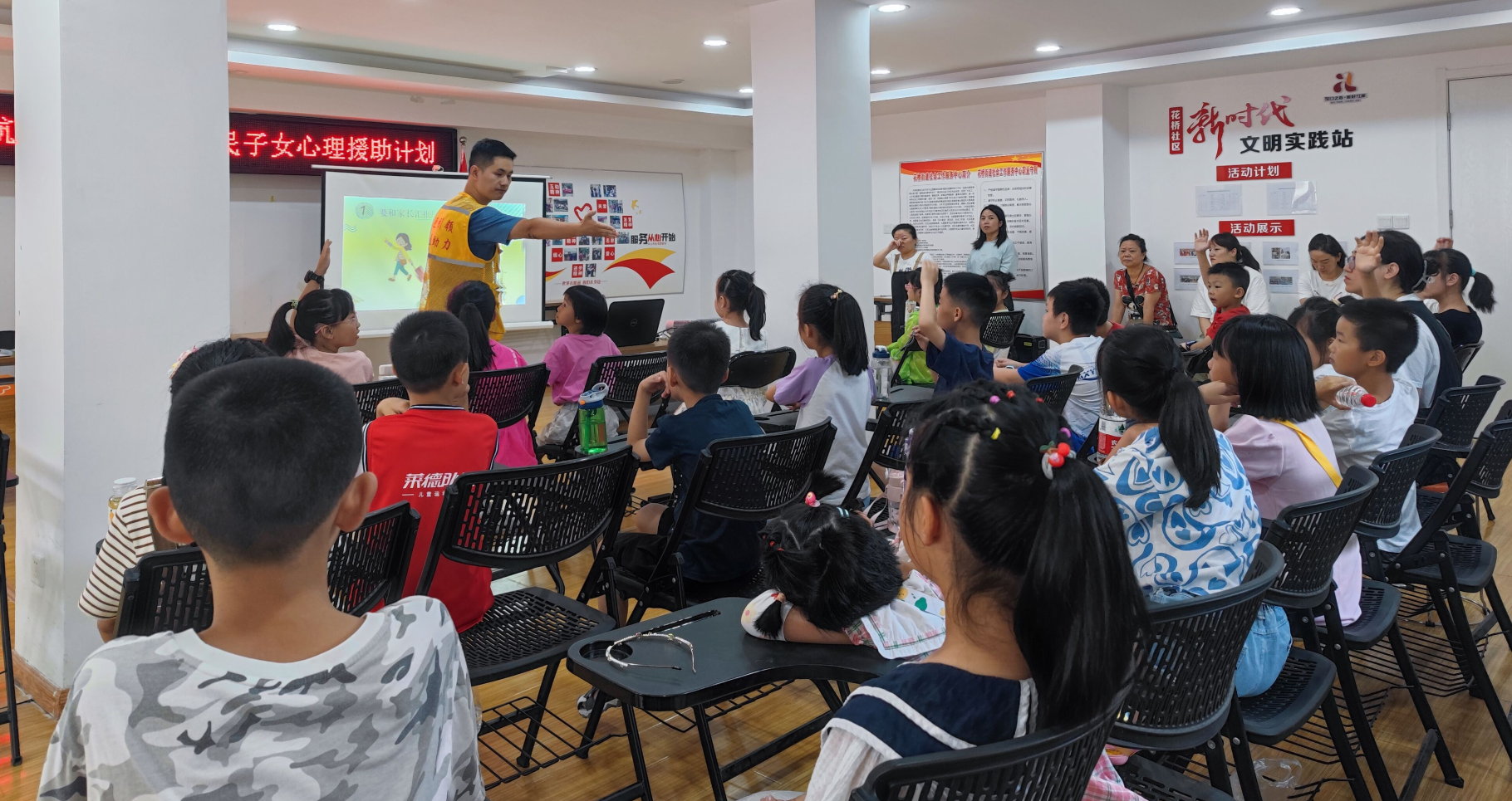 首先,社工鲁老师通过案例分析、情景模拟等环节,让孩子们形象直观地了解在水边玩耍的危害,重点教育孩子做到“六不”:不私自下水游泳、不擅自与他人结伴游泳、不在无家长或教师带领的情况下游泳、不到无安全设施、无救援人员的水域游泳、不熟悉水性的学生不擅自下水施救,尤其是教育孩子遇到同伴溺水时,不要慌张,保持冷静,避免手拉手盲目施救,要立即寻求成人帮助。活动中,鲁老师还通过问答、互动等方式巩固儿童防溺水知识,现场学习互动氛围浓厚。