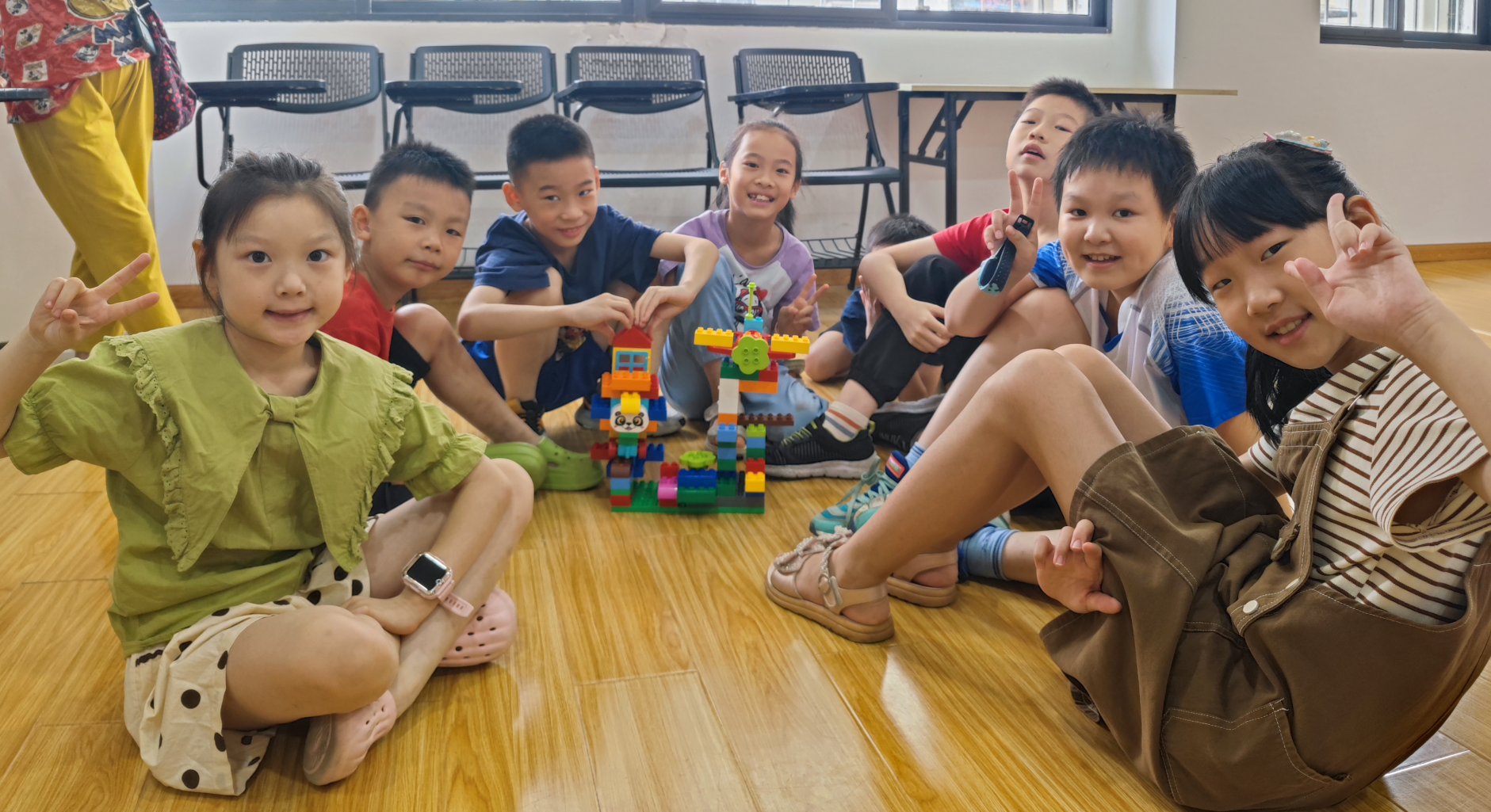 在乐高积木拼搭的环节,大家以小组的形式发挥集体的想象力,进行交通工具的自由拼搭,有的拼出了喷气式飞机,有的拼出了磁悬浮列车,还有的拼出了未来高科技宇宙飞船。“快来看看我们组拼的校车,它有着最坚固的防护措施,坐上它的孩子们再也不用担心自己的安全了。”