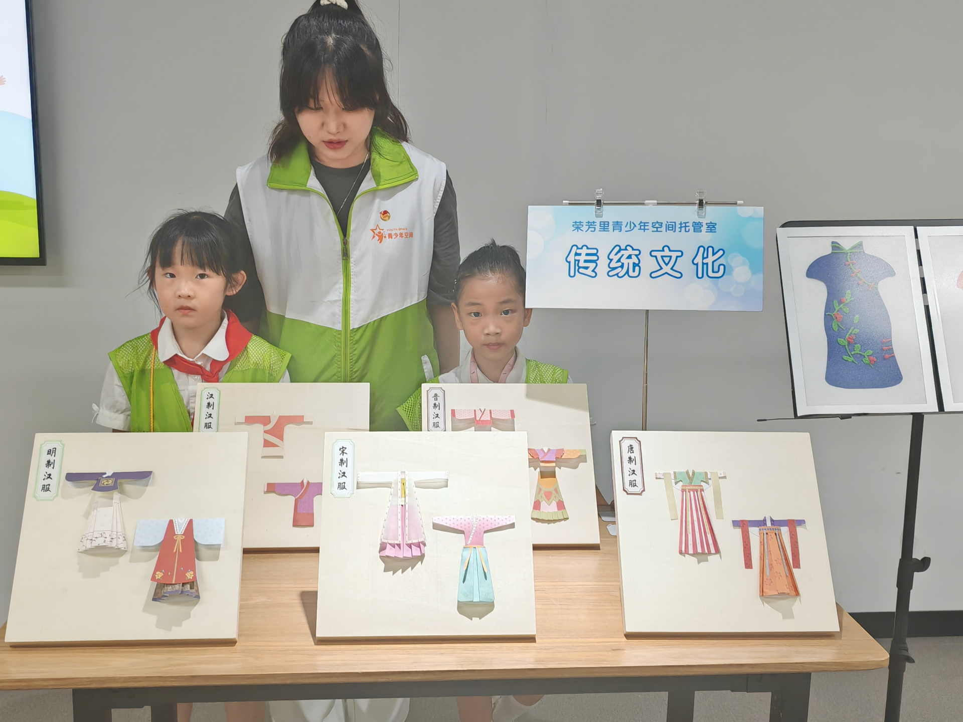 每周进行红色电影赏析,每日一练硬笔书法和朗诵背诵,同时穿插着多样的创意手工活动,培养孩子们的想象力和创造力。此外,荣芳里社区青少年空间还以“传统文化”为主题开展了社区特色课程,通过手工体验等活动带领40名辖区青少年儿童了解造纸术、皮影戏、青花瓷、刺绣等传统工艺,学习传统文化。