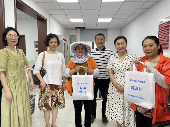 近日,武汉市武昌区中南路街道莲溪寺社区党委联合湖北省侨联机关党委,为居住在辖区的高龄独居老人、困难人员,及酷暑下坚守工作的环卫工人、快递员、网约车司机等新业态劳动者开展“立秋送清凉,关怀沁人心”志愿服务活动。