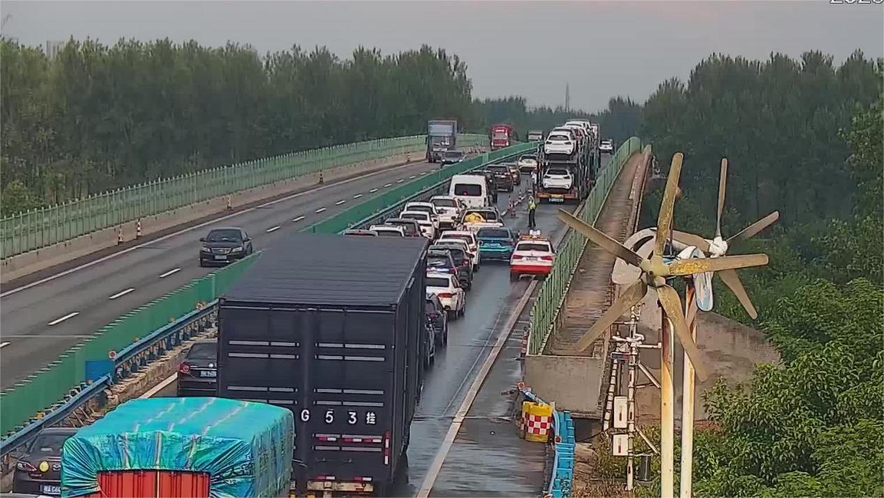 记者从公共场所视频监控上看到,一辆运输商品的货车行驶至沪渝高速公路湖北潜江段时,突然降低车速,打开双闪灯,缓缓停在了一处窄桥上。由于被占据了一半的车道,过往车辆纷纷紧急减速、变道避让,现场险象环生。