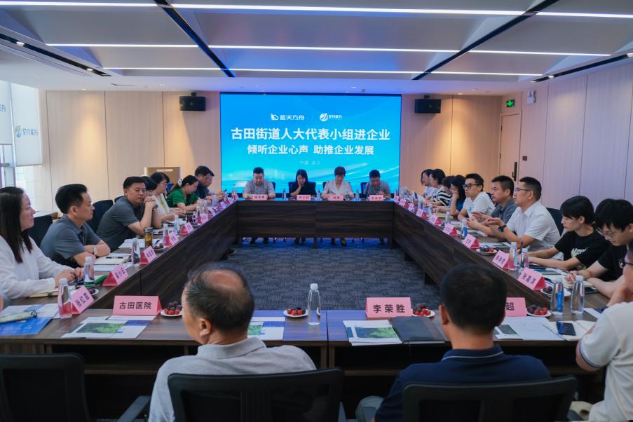 8月10日上午,武汉市硚口区古田街道人大代表小组一行20余人到蓝天方舟健康物联网(湖北)有限公司、湖北艾约家方健康管理有限公司走访调研,通过座谈交流,全面了解公司现阶段的发展情况和所需支持。