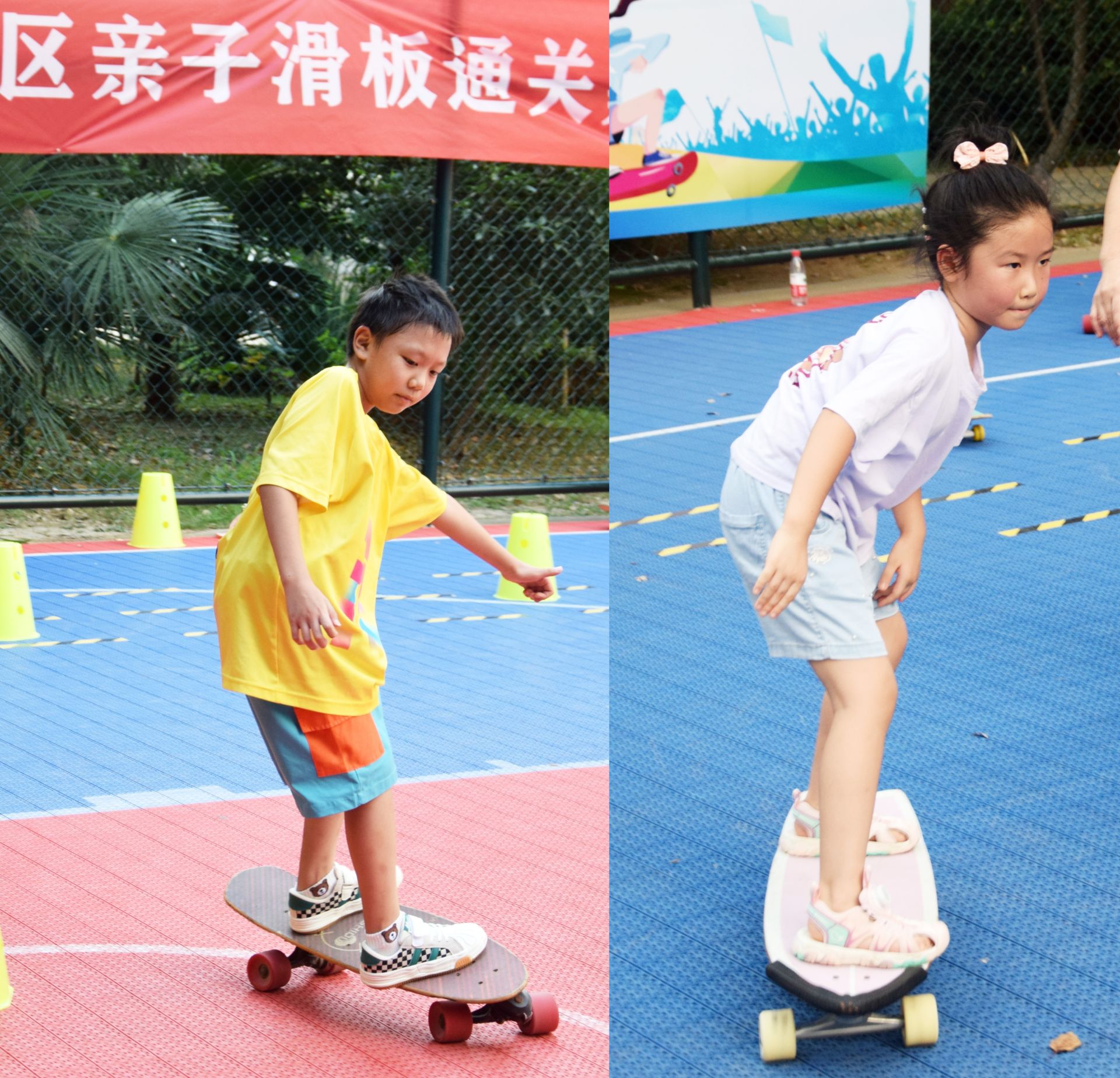 接下来便是激动人心的游戏大比拼——速滑三子棋、钓鱼达人、森林穿梭、运送星球……各个游戏项目融合游戏性、趣味性、挑战性。“运送星球”游戏项目中,小朋友们和爸爸妈妈使出浑身解数、配合默契、奋力奔跑,欢呼声、加油声、喝彩声此起彼伏,现场充满了欢声笑语。滑板运动不仅能够锻炼身体平衡能力,在游戏中增进了亲子感情,也让孩子们结交了新的朋友。