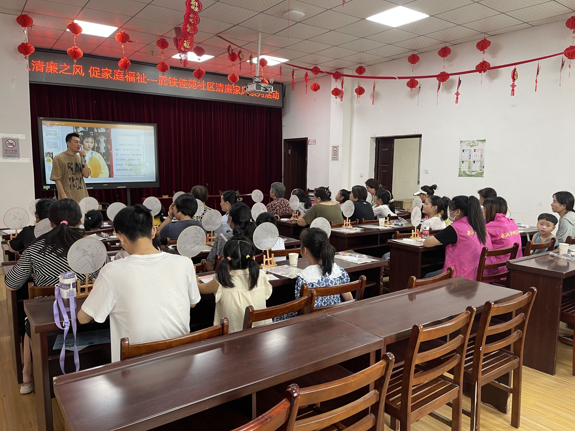 为推进廉政文化建设,营造爱廉、尚廉、思廉的良好风尚,传承优秀传统文化,近日,武汉市洪山区梨园街道武铁佳苑社区在社区二楼开展了“以清廉之风,促家庭福祉”系列活动,共吸引了辖区35位感兴趣的居民参加此次非遗团扇绘画活动。