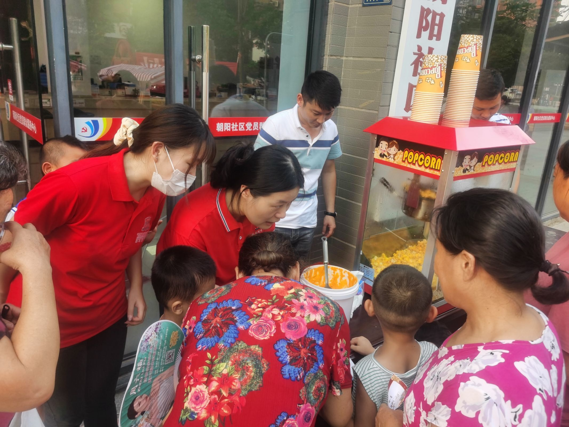 美食体验,爱心义卖。社区工作者及志愿者还贴心地为居民准备了酸梅汤、爆米花,让大家在炎炎夏日感受到清凉和欢乐。此外,社区还将儿童的创意沙画、宝妈的肌理画按照“五元两件”进行义展义卖,不少居民得知义卖所得将捐入社区基金会,也毫不犹豫地加入购买行列。