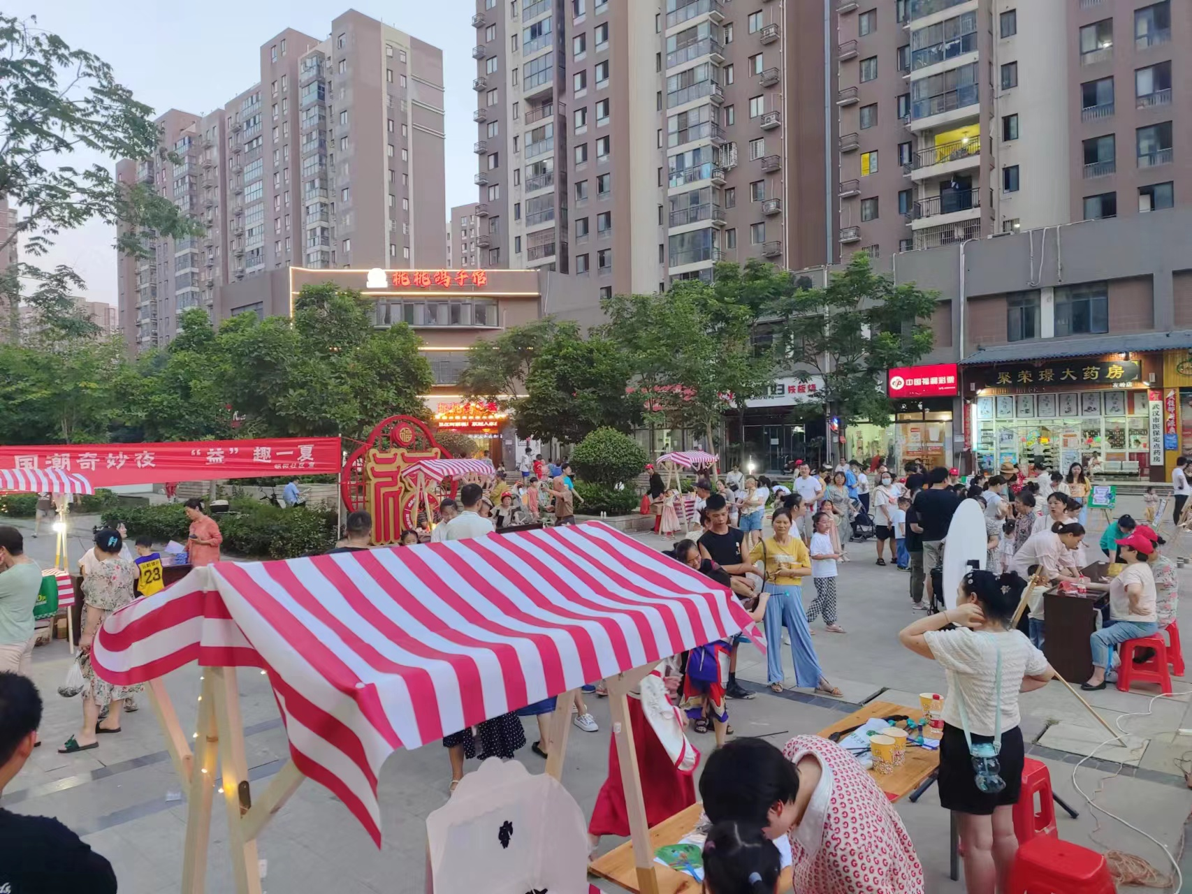 为丰富社区居民的精神生活,增进邻里关系,近日,武汉东湖高新区左岭街道朝阳社区开展“ 国潮奇妙夜 ‘益’趣一夏”集市活动,现场设置了国风制作、趣味游戏、美食体验、爱心杂货铺等丰富多彩的环节,吸引了200余人纷至沓来,逛摊、淘货、玩游戏、做手工、吃爆米花……