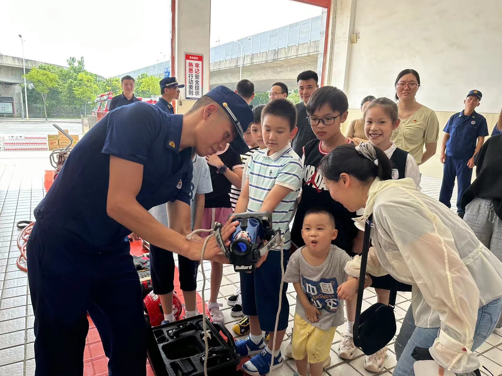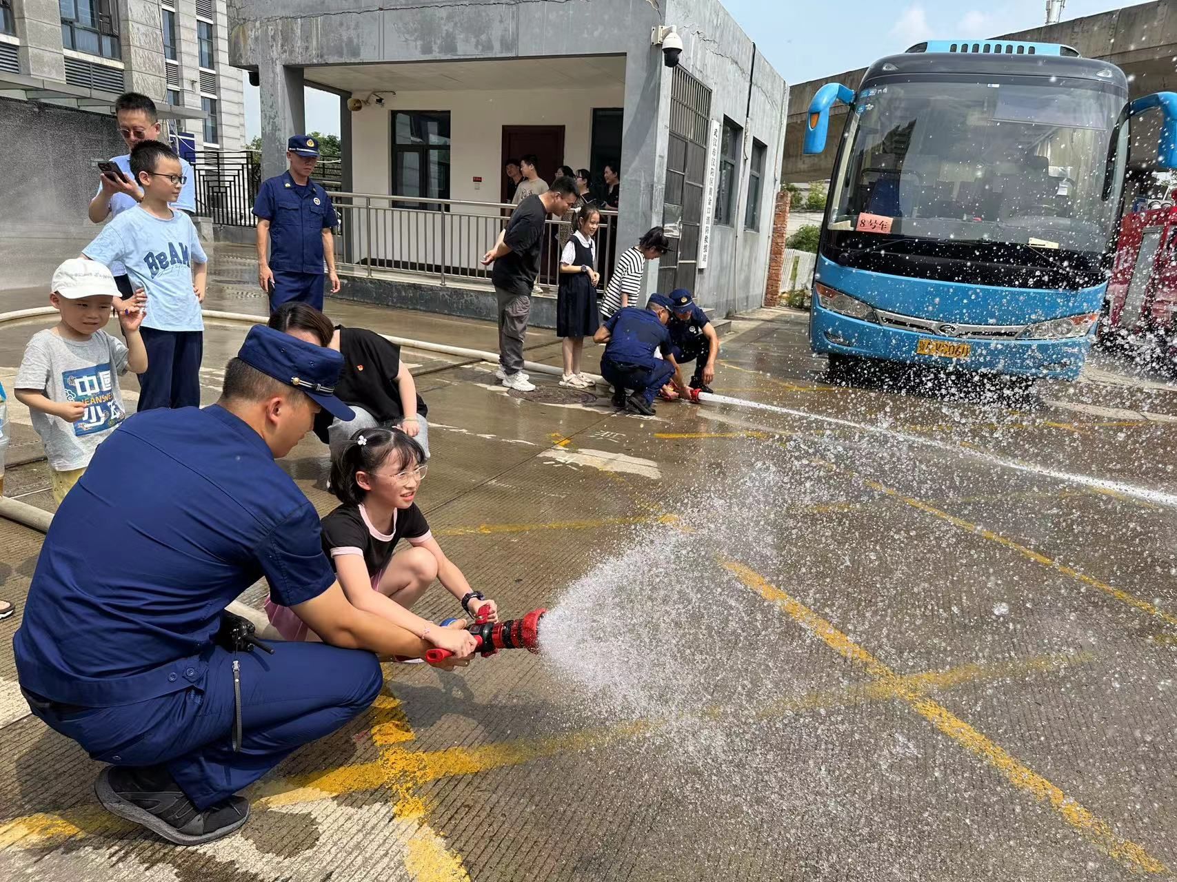 最后,为进一步加深孩子们对消防安全知识的理解和掌握,中队消防员带领大家来到现场利用展示如何使用消防水带、水泡枪、让孩子们在活动中通过触摸、询问、尝试、互动的方式增强消防安全意识和自防自救能力。