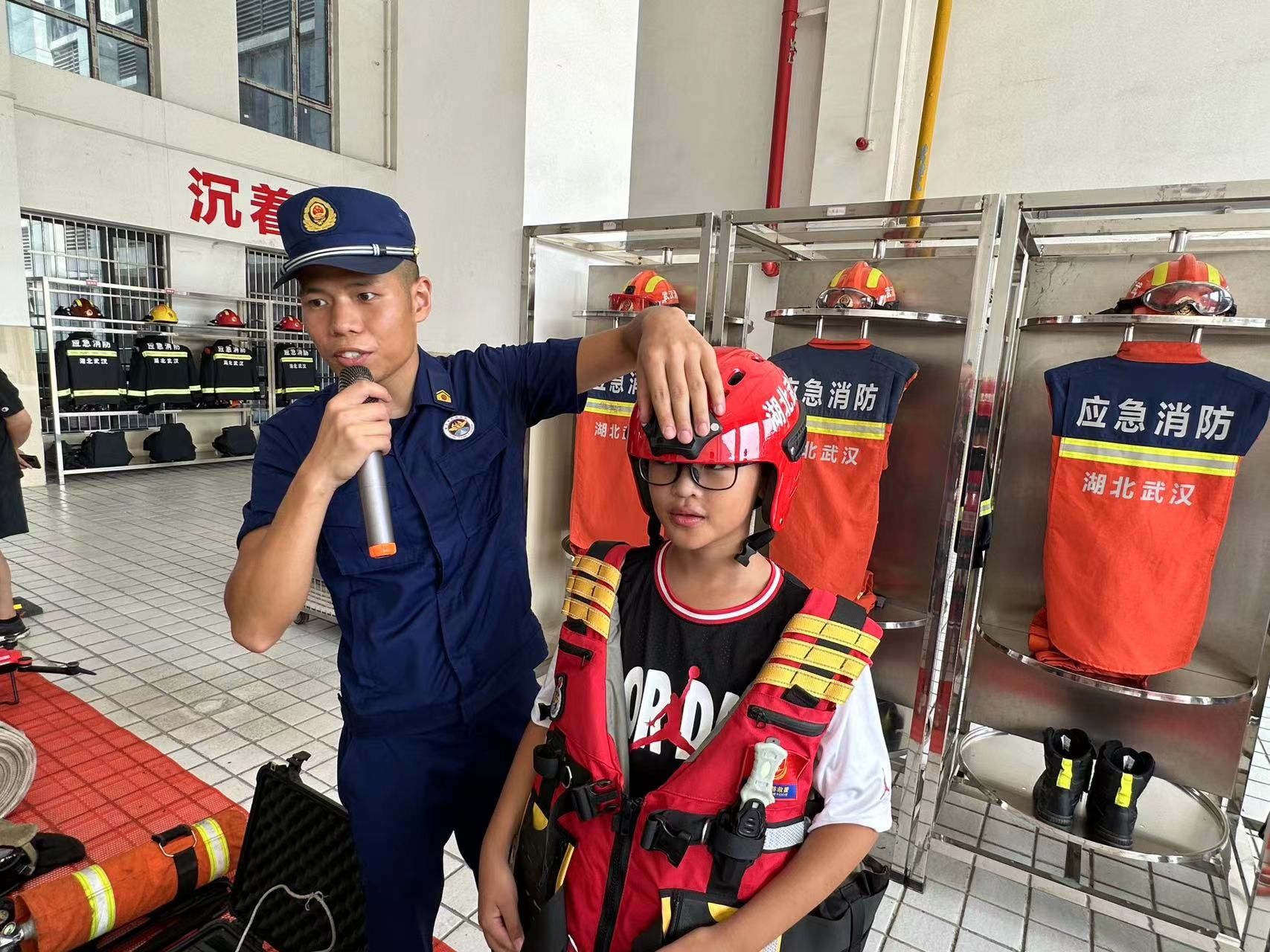 “今天,我终于梦想成真做了一回消防员。”小朋友穿戴消防员防火消防服,脸上洋溢着自豪和满足的笑容,仿佛自己就是“小小消防员”。8月10日,武汉市汉阳区永丰街道董家店社区组织共建单位武汉市不动产登记中心第一、二党支部亲子家庭开展青少年暑期消防安全研学活动。孩子们走进黄金口消防中队,跟着消防员参观消防器材、消防车辆和消防装备,还能坐上消防车、试穿消防服……大家争做“小小消防员”。