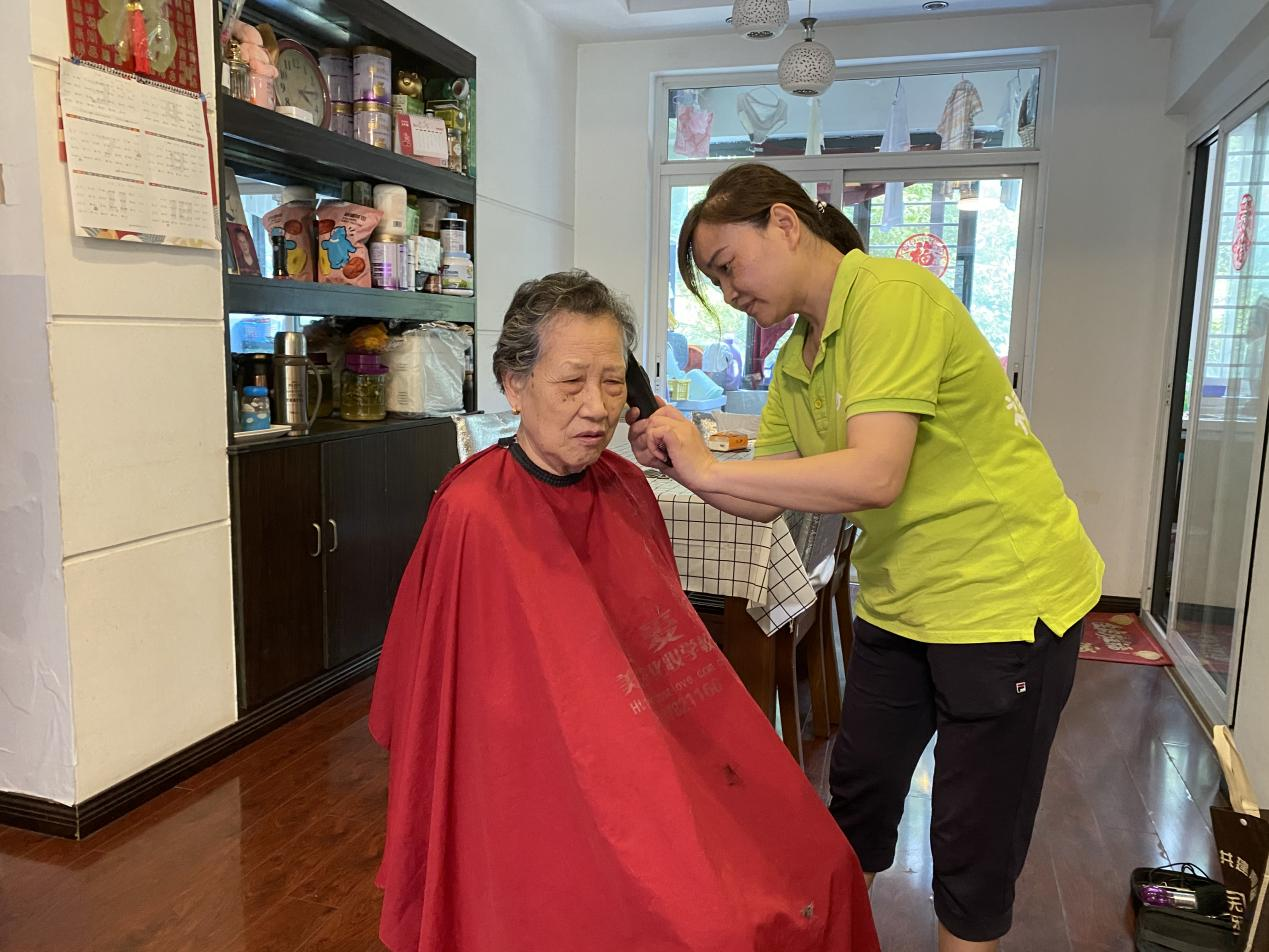 “我们年龄大腿脚不利索了,去一次理发店很不方便。每次都要麻烦子女,社区上门理发真是帮了大忙,太感谢社区和志愿者了。”胡奶奶握着社区工作人员的手不住地感谢。