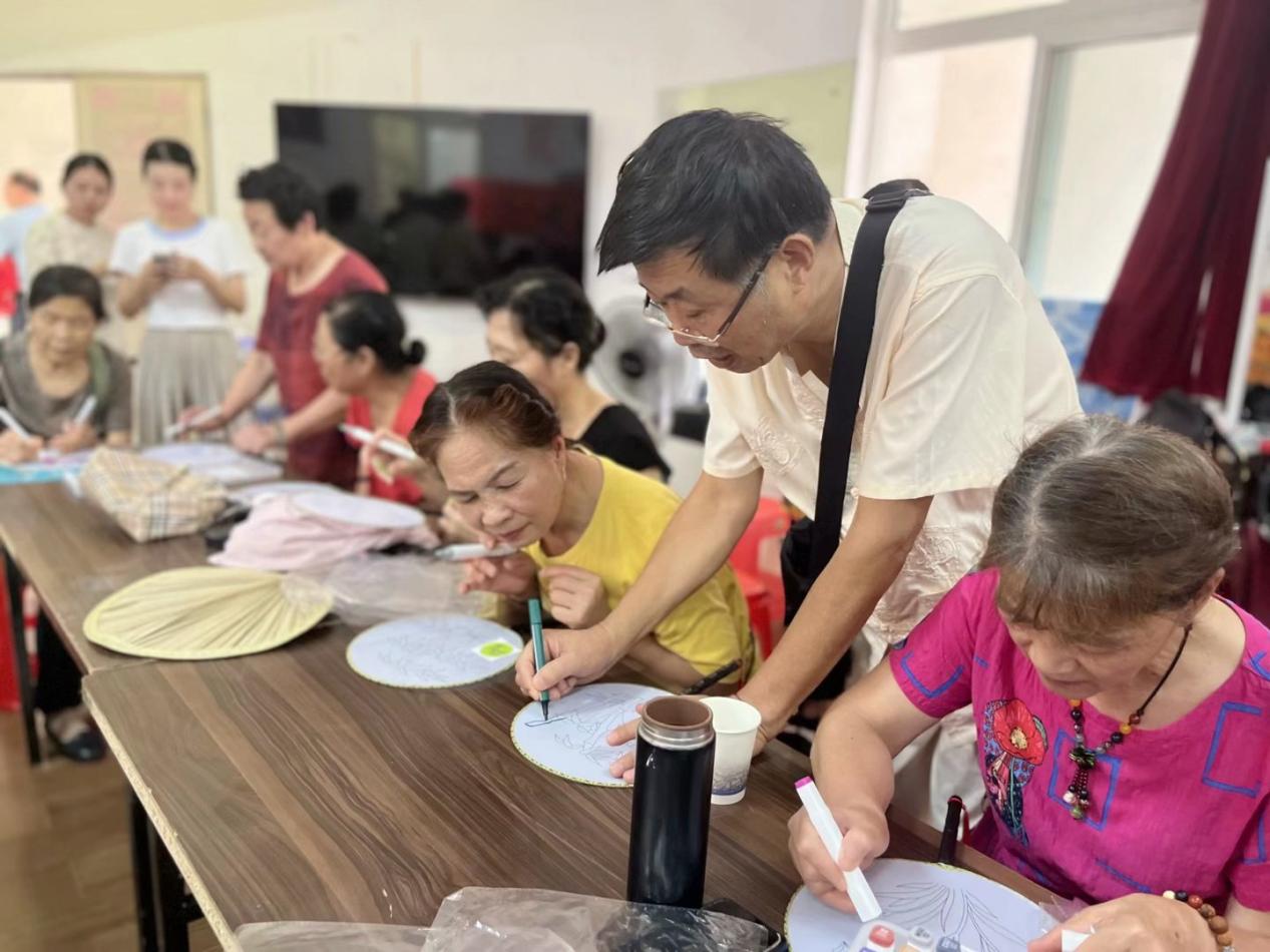 活动现场,社区居民认真、仔细地用颜料画笔在团扇上绘画、选色上色,描绘出自己对“廉”的理解。借“扇”喻“善”,以“莲”倡“廉”,传播廉洁自律的正能量,体现廉洁与传统民俗文化相融合。