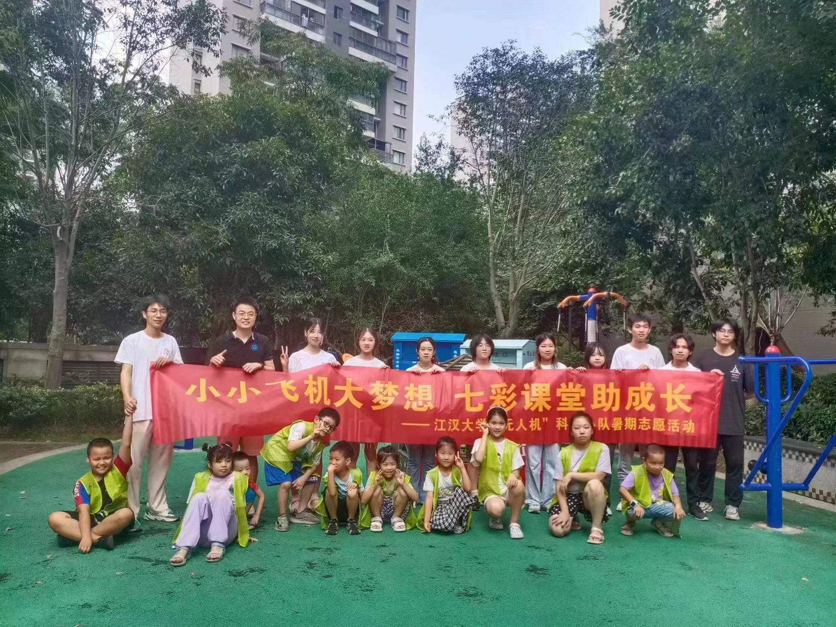 “把握好方向盘,看清楚飞机的位置……”走进武汉经开区沌阳街道阳光城社区四期广场,一堂精彩的“小小飞机大梦想”科普体验活动正在进行,这是阳光城社区众多暑期托管课堂的一个缩影。