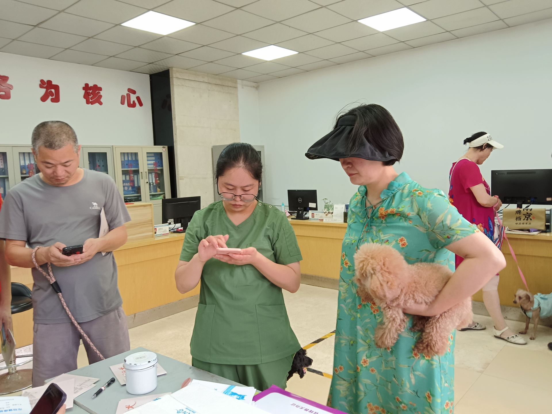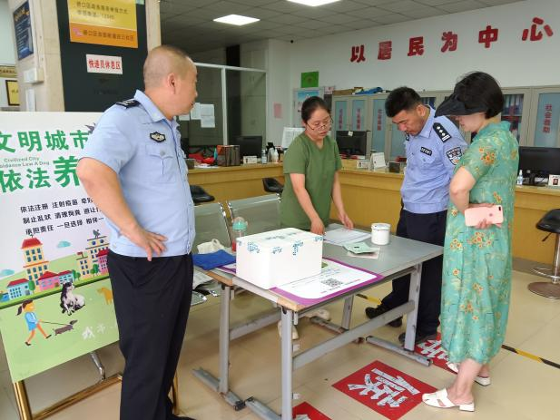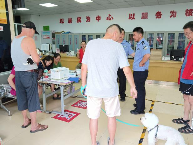 为进一步倡导居民文明养犬、合法养犬,方便社区居民为爱犬办证、年检登记,8月13日,武汉市硚口区古田街道古三社区新文明实践站联合古田街派出所、宠物医院在社区内开展“养犬办证登记专场”便民服务,集中为养犬居民办理犬证注册登记、年检、注射疫苗等业务,让社区居民在自家门口就能享受一站式服务,文明规范养犬。