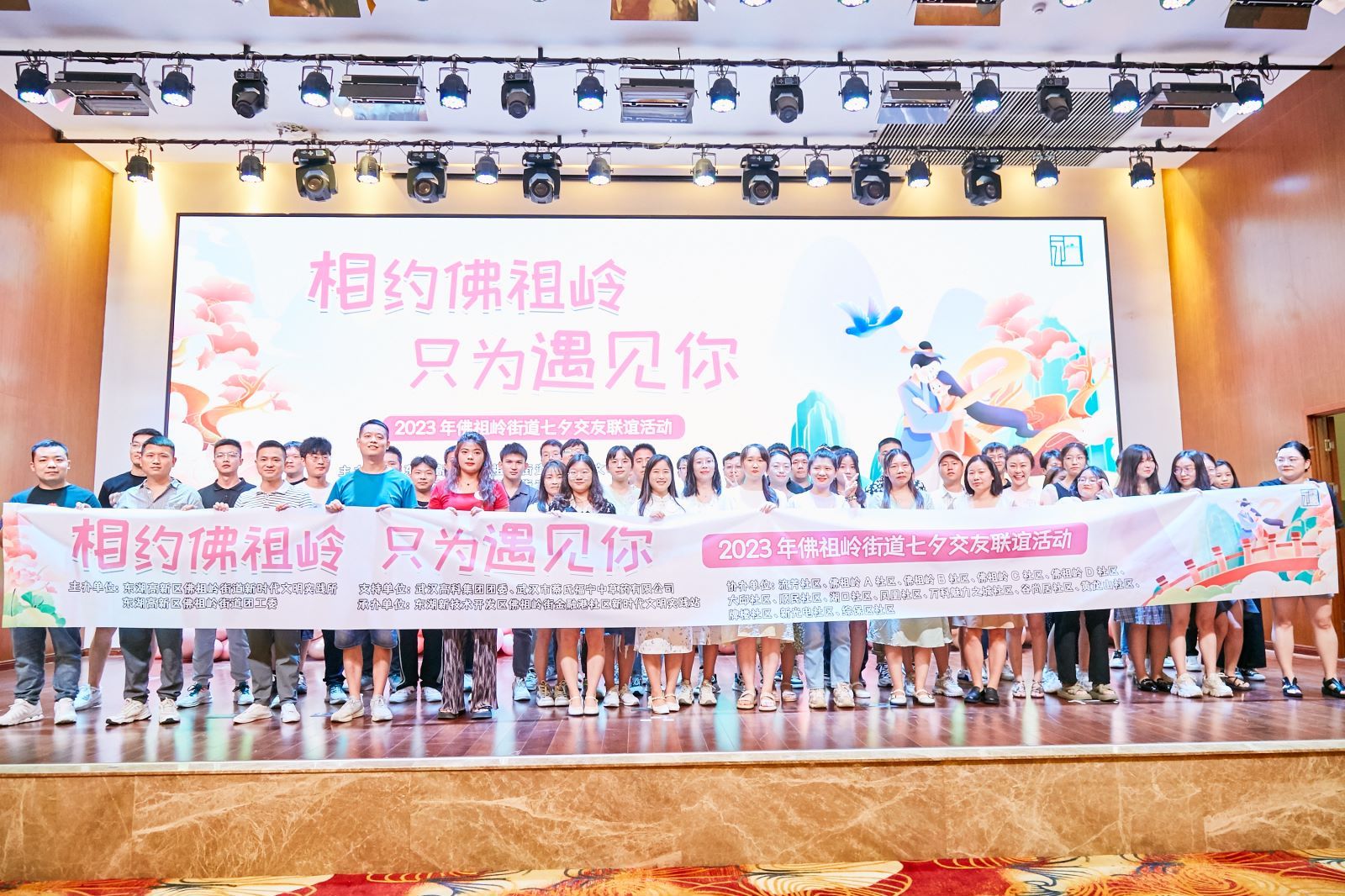 为深入开展“我为群众办实事”实践活动,切实帮助社区单身青年解决婚恋交友问题,8月12日,“相约佛祖岭·只为遇见你”2023年社区单身青年交友联谊活动在武汉市东湖高新区佛祖岭街道金融港社区成功举办。近80名单身小哥哥小姐姐参加活动,在此相聚,欢度一夏。