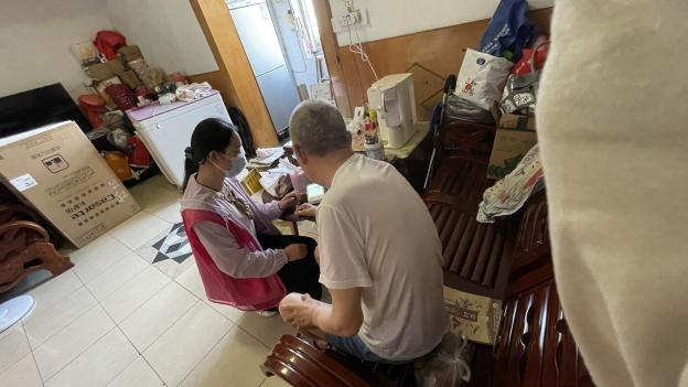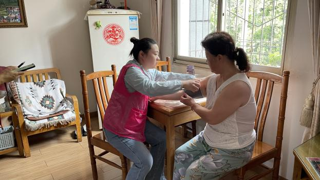 此外,零距离社工还为老人提供测量血压服务,嘱咐老人饮食清淡、多饮水,一旦发生紧急情况,一定要第一时间告知紧急联系人,确保电话畅通。