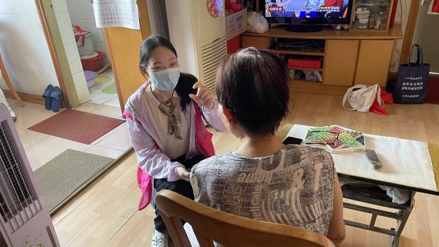 “李奶奶,我又来看您了,今天身体感觉怎么样?”预约好了探访时间后,社工像往常一样走进李奶奶家中,询问老人近期身体状况和生活情况。“现在高温天,要注意防暑降温,空调和风扇该开就开,有什么困难可以及时和我们联系……”社工边和老人唠家常,边嘱咐老人:“大热天的隔夜饭菜不要吃,外面太热了尽量少出门,有需要采购的东西可以跟我们说……”一句句叮咛饱含着道不尽的关怀,老人笑容洋溢地回道,“好的好的,有你们来关心我,我身体好着嘞!”
