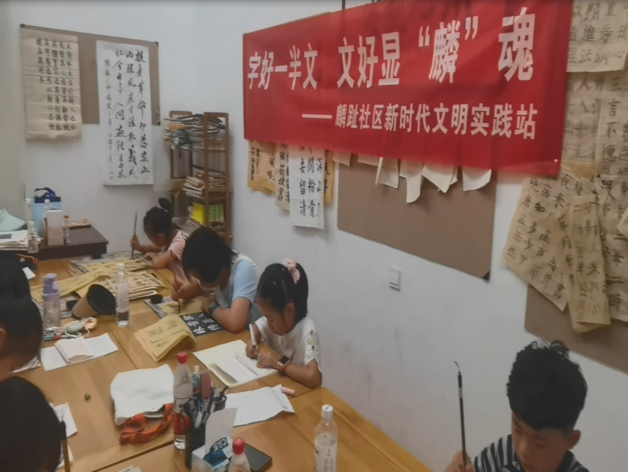 为弘扬中华民族传统文化,传承书法魅力,弘扬优良家风,8月11日,武汉市江岸区四唯街道麟趾社区新时代文明实践站联系辖区志愿者老师,开展“字好一半文,文好显‘麟’魂”青少年硬笔书法班,借助传统书法艺术,丰富青少年暑期文化生活。