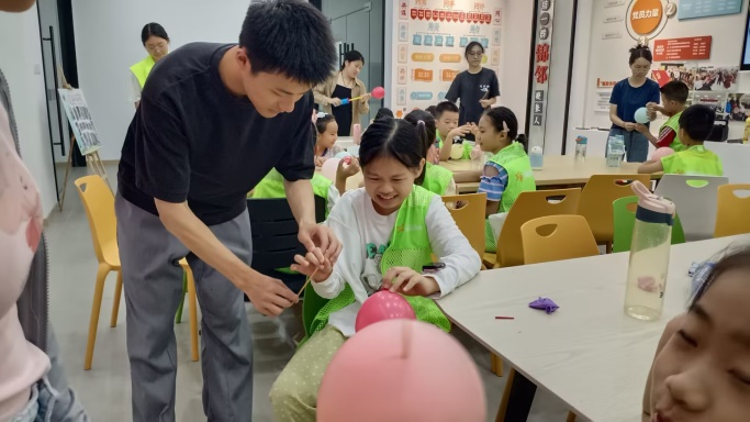 除了莫比托乌斯环,竹签穿气球也是活动的亮点之一。孩子们受到老师的指导,使用竹签小心穿过一个气球,而不让气球破裂。这个简单的挑战不仅考验孩子的手眼协调能力,还培养了他们耐心和细致地观察力。很多孩子兴奋地试验不同的方法,他们的面孔洋溢着满足和喜悦的笑容,当他们成功地完成任务时,全场都响起了热烈的掌声。