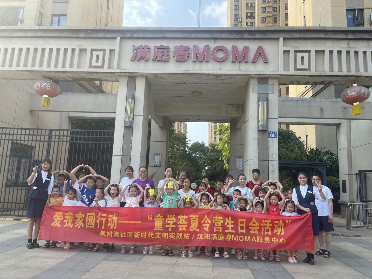 8月16日,武汉市经济技术开发区沌阳街道枫树湾社区携手满庭春第一物业开展了以“社区伴成长,暑期快乐你我他”为主题的儿童集体生日会,为辖区“小寿星”们送去了生日祝福,陪伴他们度过一个温馨快乐的暑假。
