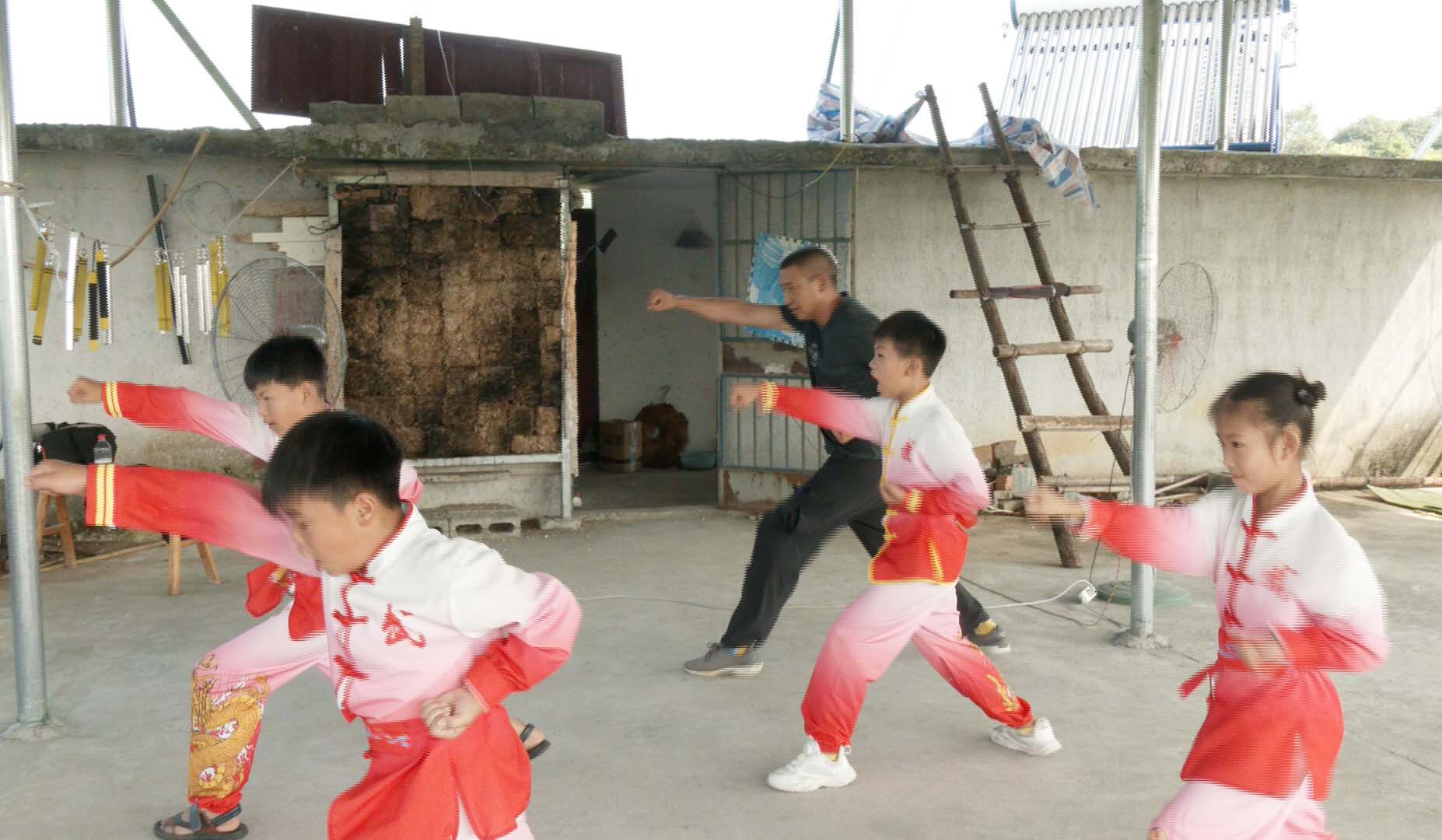 在湖北省咸宁市崇阳县天城镇蛤蟆石村,村民邬和军自发免费建起了一支少年武术队。今年暑假期间,16名孩子在这里学习武术,还在湖北省青少年武术比赛中获得佳绩。