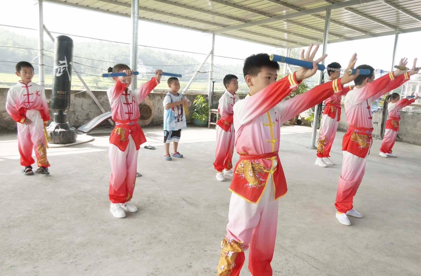 随着村里的孩子不断加入,邬和军简单地将自家屋顶改造了一下,用竹竿当做压腿杆,买来了双节棍,孩子们就在这个简陋的训练场地跟着邬师父学着一招一式。在这群孩子中,最小的6岁,最大的12岁,大部分是村里的留守儿童。在课余时间和暑假期间,孩子们放下手机,拿起“兵器”,在邬师父家的屋顶勤学苦练,磨练意志,在汗水中收获学习武术的乐趣,培养坚毅的品格。