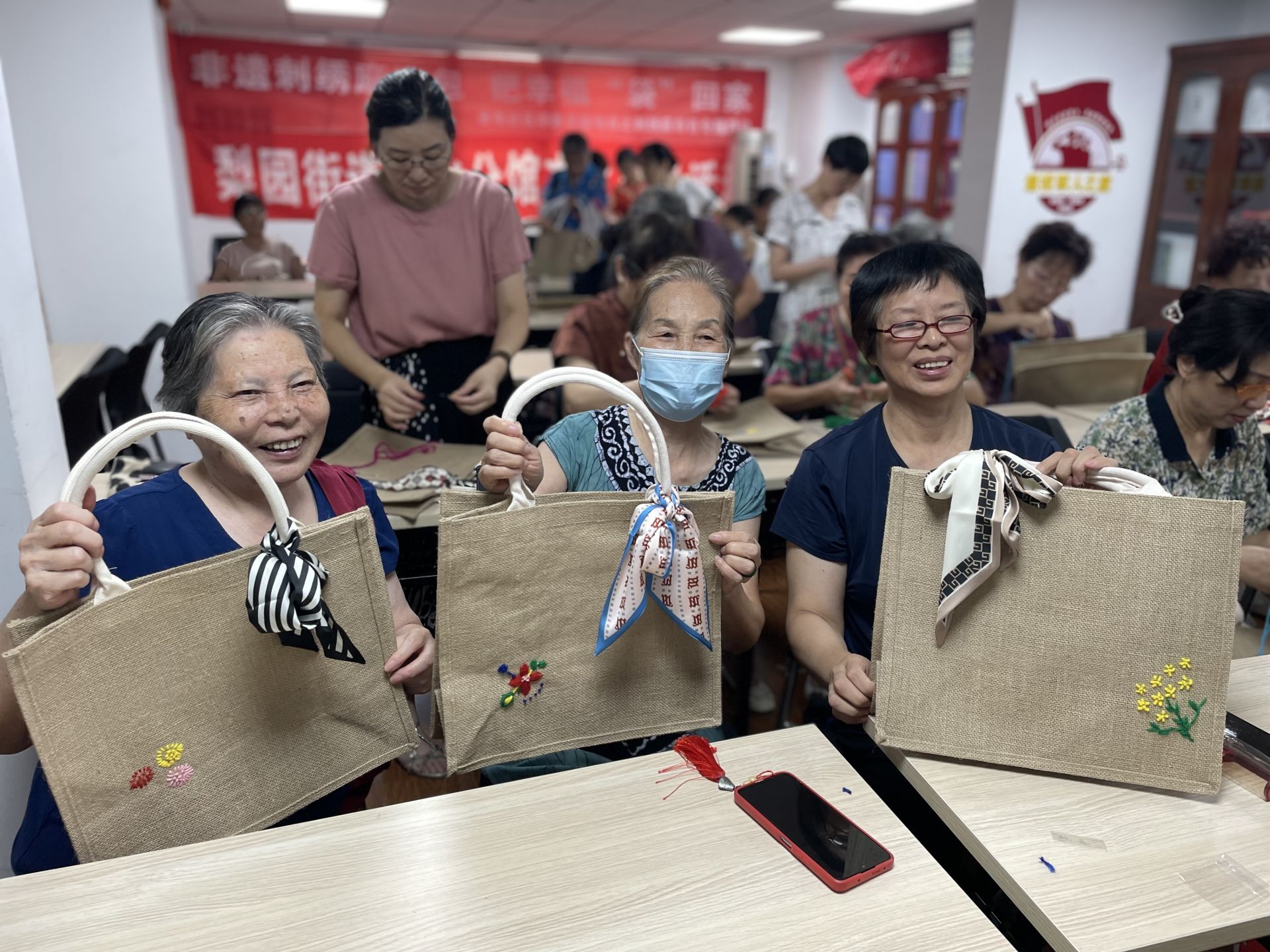 “我这一针一线都是文化的传承啊,现在都没多少人缝缝补补了,更何况这种传统的刺绣!”“嗯,是的,你这样一说,感觉我们做的活动更加有意义了!”张姐和丁姐边绣边开玩笑地说道。