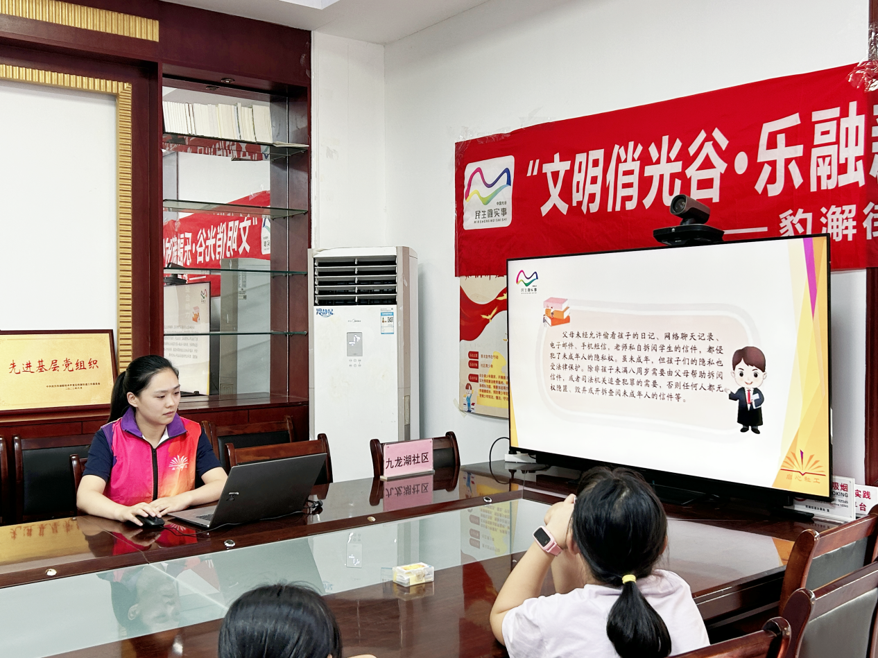 为深入学习宣传和贯彻落实《中华人民共和国未成年人保护法》,营造关爱保护未成年人健康成长的浓厚氛围,增强未成年人的法律意识,8 月15 日,武汉东湖高新区豹澥街道九龙湖社区新时代文明实践站开展了民生微实事项目之“与法‘童’行,守护明天” 主题法律知识活动。活动由豹澥街道九龙湖社区主办,武汉光谷启心社会工作服务中心承办。