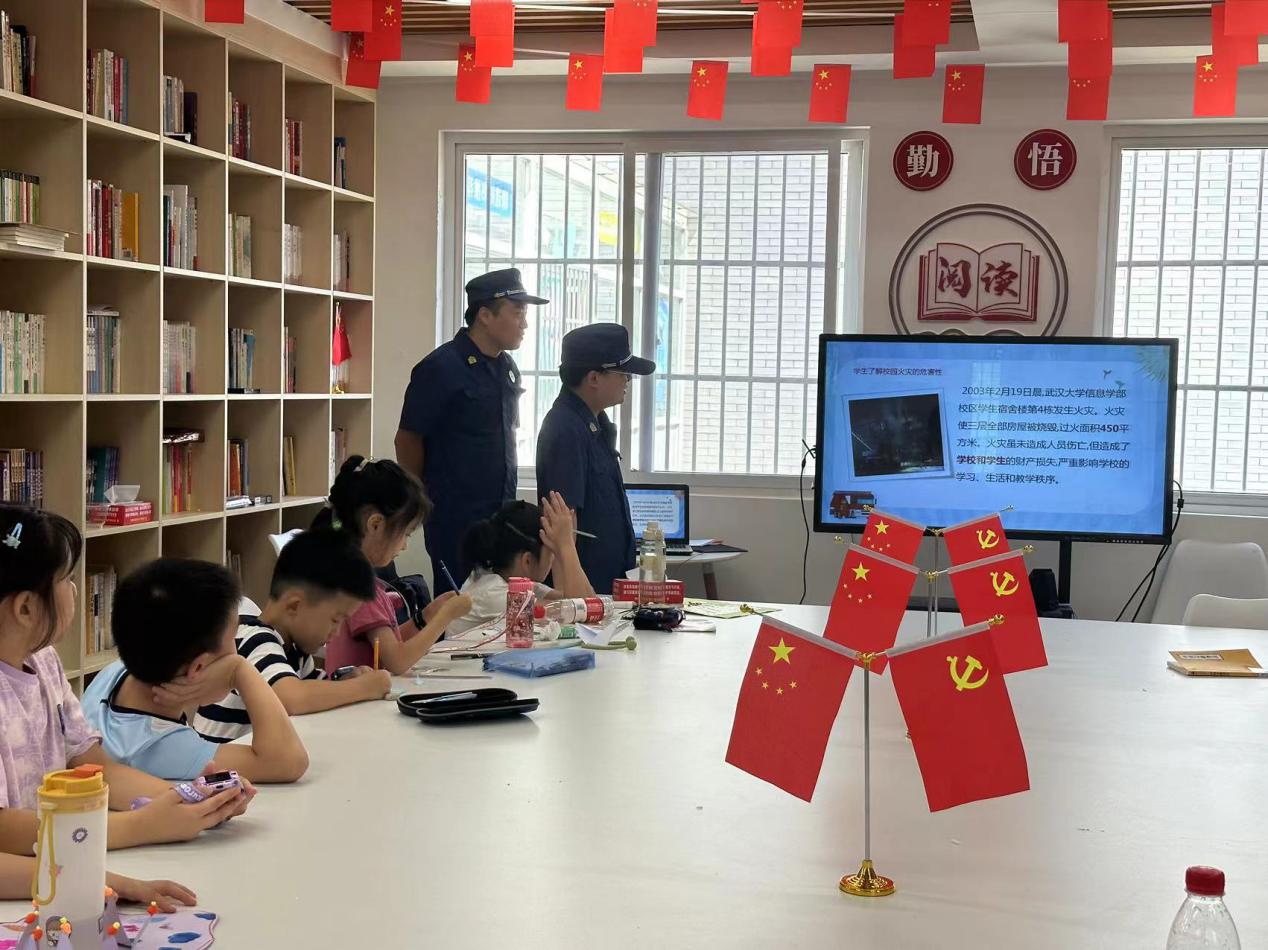近日,武汉经开区沌阳街道新民社区联合沌阳街道专职消防站在暑期托管班的小朋友们开展了一堂别开生面的消防知识培训。