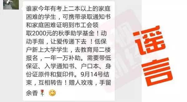 此消息在每年高考过后都会在全国各地疯传,然而经过记者向相关教育部门证实:所谓的秋季助学基金和低保家庭学生到教育局领一万元补助的消息都是假的,这有可能是不法分子谎称政府资助困难学生来进行诈骗,请广大群众不要轻信。关于对低保家庭、贫困家庭的助学具体方案,还请大家留意官方渠道发布的消息。