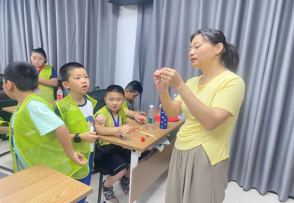 用矿泉水瓶盖、棉签、雪糕棍、卡纸做出自由航行的小帆船,孩子们的好奇心和动手能力被充分唤醒。在冶金街道碧苑花园社区“四点半学校”暑期托管班内,一场趣味十足的手工课正在开展。民进青山区工委会员肖丹老师利用生活中随处可见的小物品和废旧材料,带领小朋友们自己动手制作出微型帆船,启智润心,变废为宝,将环保理念和创新精神播撒在孩子们的心田。