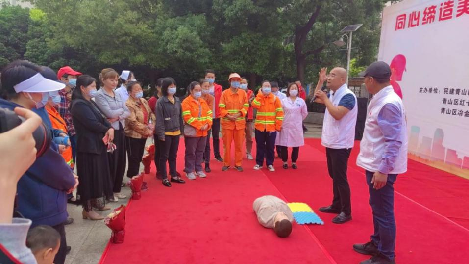 为深入推进“同心聚力 共同缔造”活动,向为缔造美好环境与幸福生活而辛勤付出的环卫工人们致敬,民建青山区工委联合青山区红十字会、冶金街道办事处,在现代花园社区B区广场举办“同心缔造美好幸福,感恩回馈环卫女工”活动。