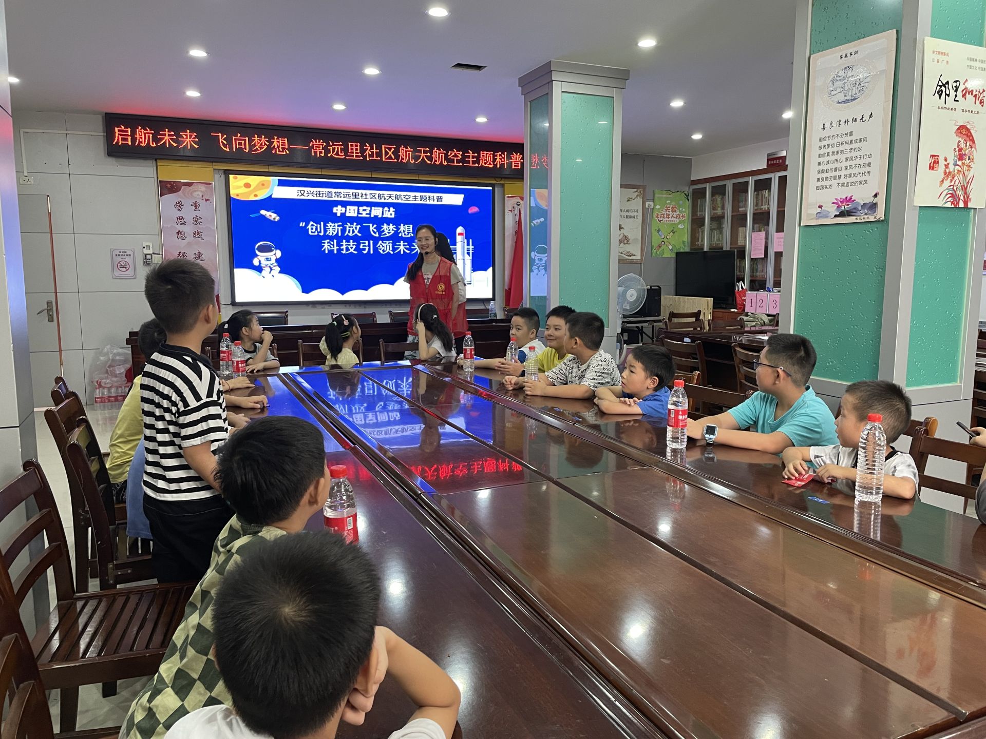 为进一步弘扬崇尚科学、探索未知、敢于创新的理想信念,以航天梦托举中国梦,激发汇聚逐梦筑梦圆梦的磅礴力量,用实际行动传承航天精神、传递航天情怀、传播航天文化,8月17日上午,武汉市江汉区汉兴街常远里社区开展“启航未来 飞向梦想”航天航空主题科普活动,聚集了二十余组对航天探索感兴趣的亲子家庭。