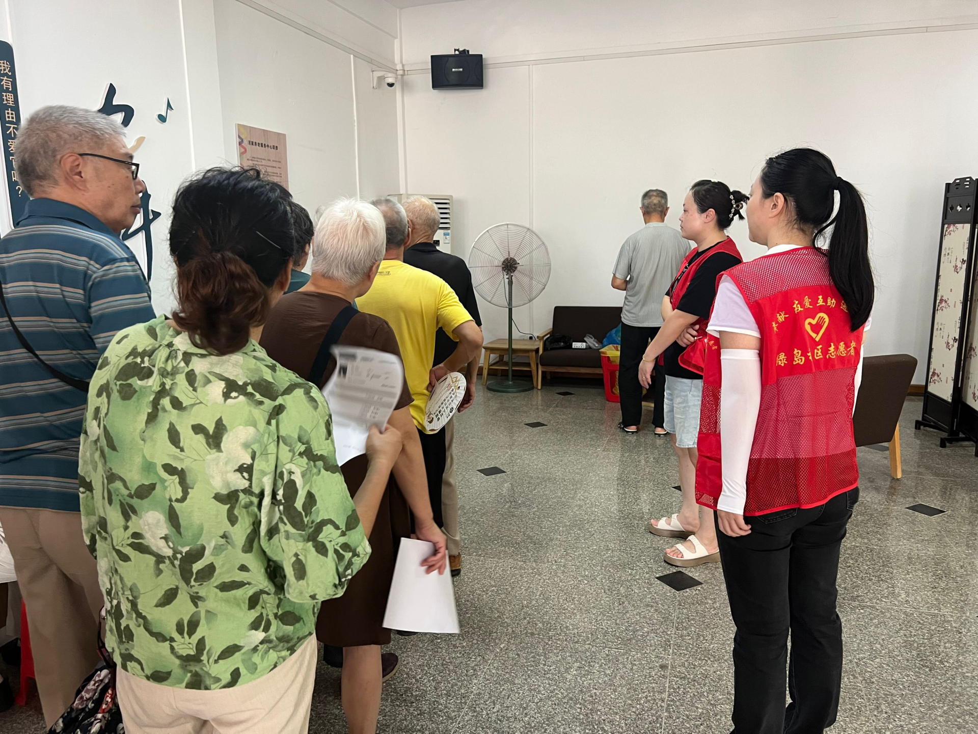 参与活动的社区志愿者及微网格长们活跃在现场的每一个角落,他们引导居民有序排队,为有需要的居民搬运椅子,引导居民填写体检表,与现场医生一起化身为居民“心脏”的“健康卫士”。