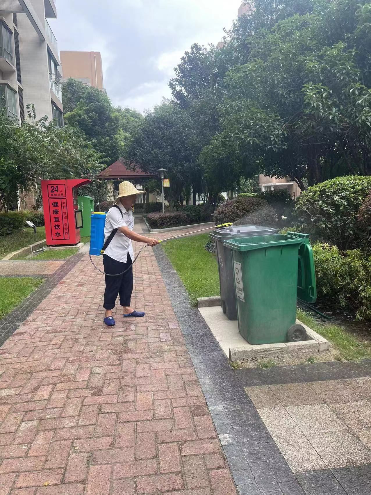 针对近期持续高温、发热咳嗽人员增多情况,社区提示小区物业强化消毒工作,阻断病毒传播。小区物业定期对小区内垃圾中转站、果皮箱、卫生死角等薄弱环节进行消杀,有效抑制病媒生物滋生,共同营造更加干净舒适的人居环境。
